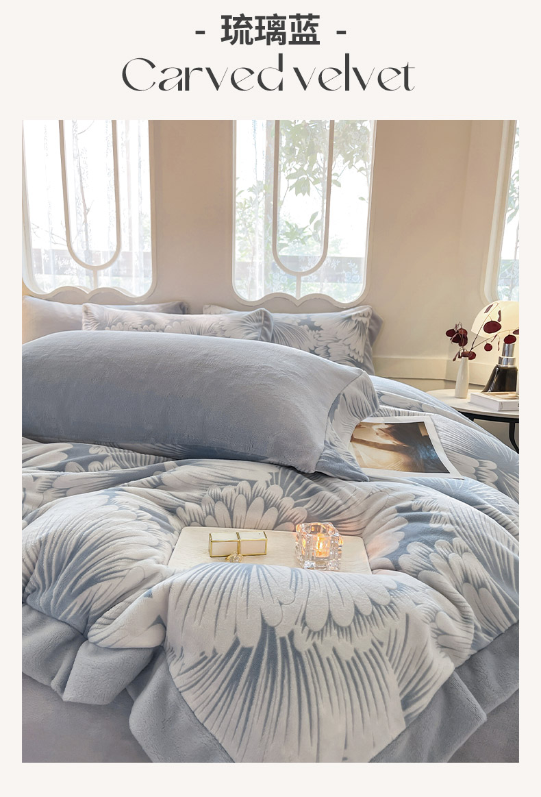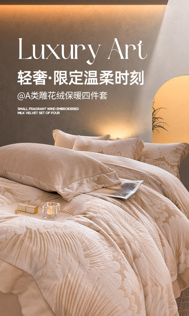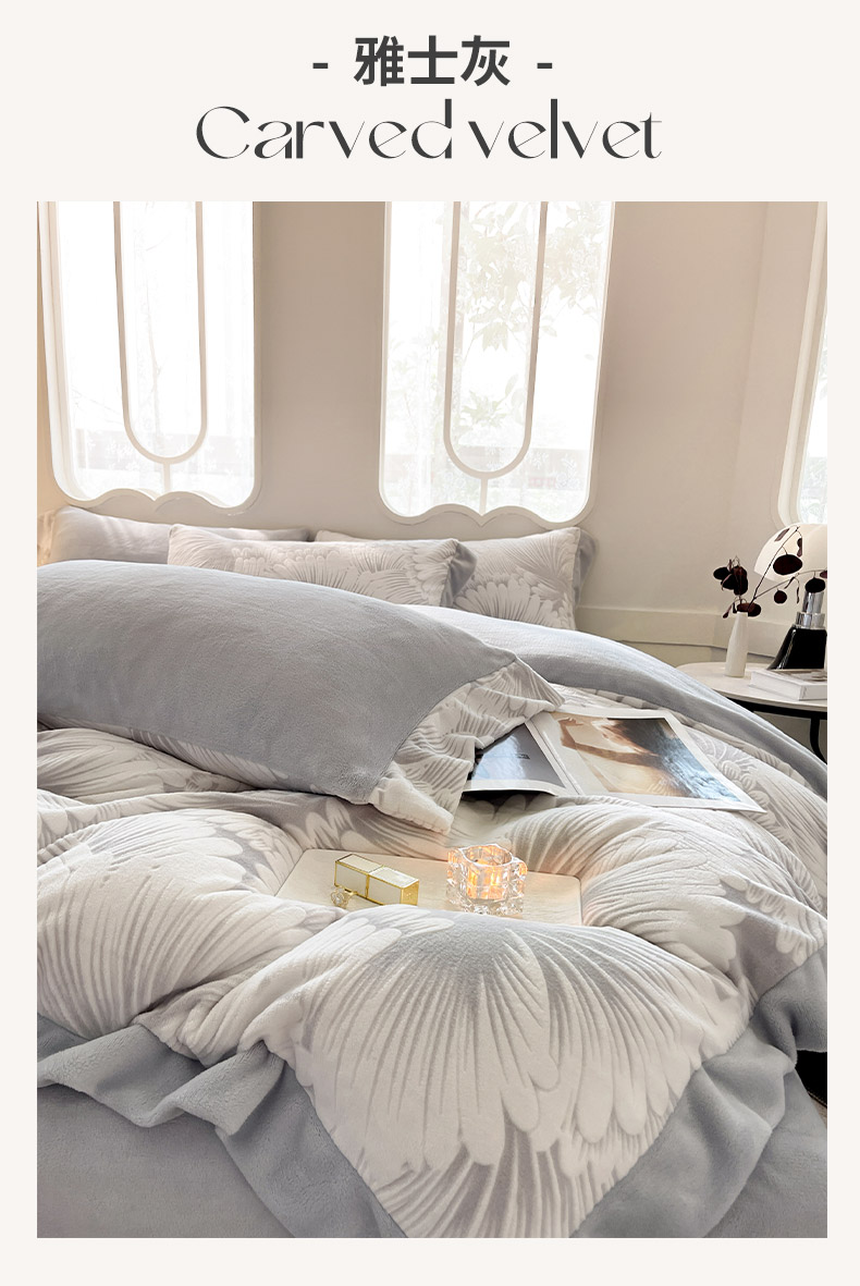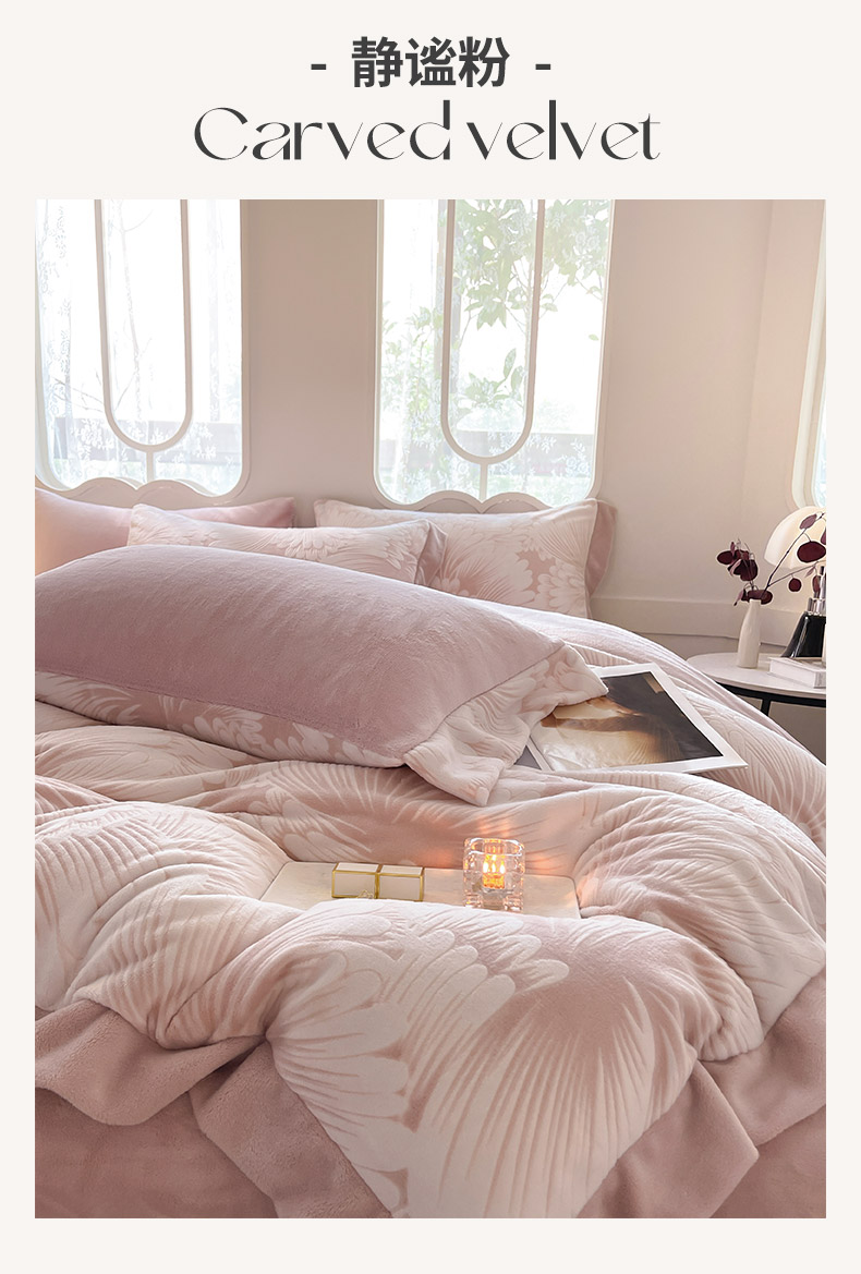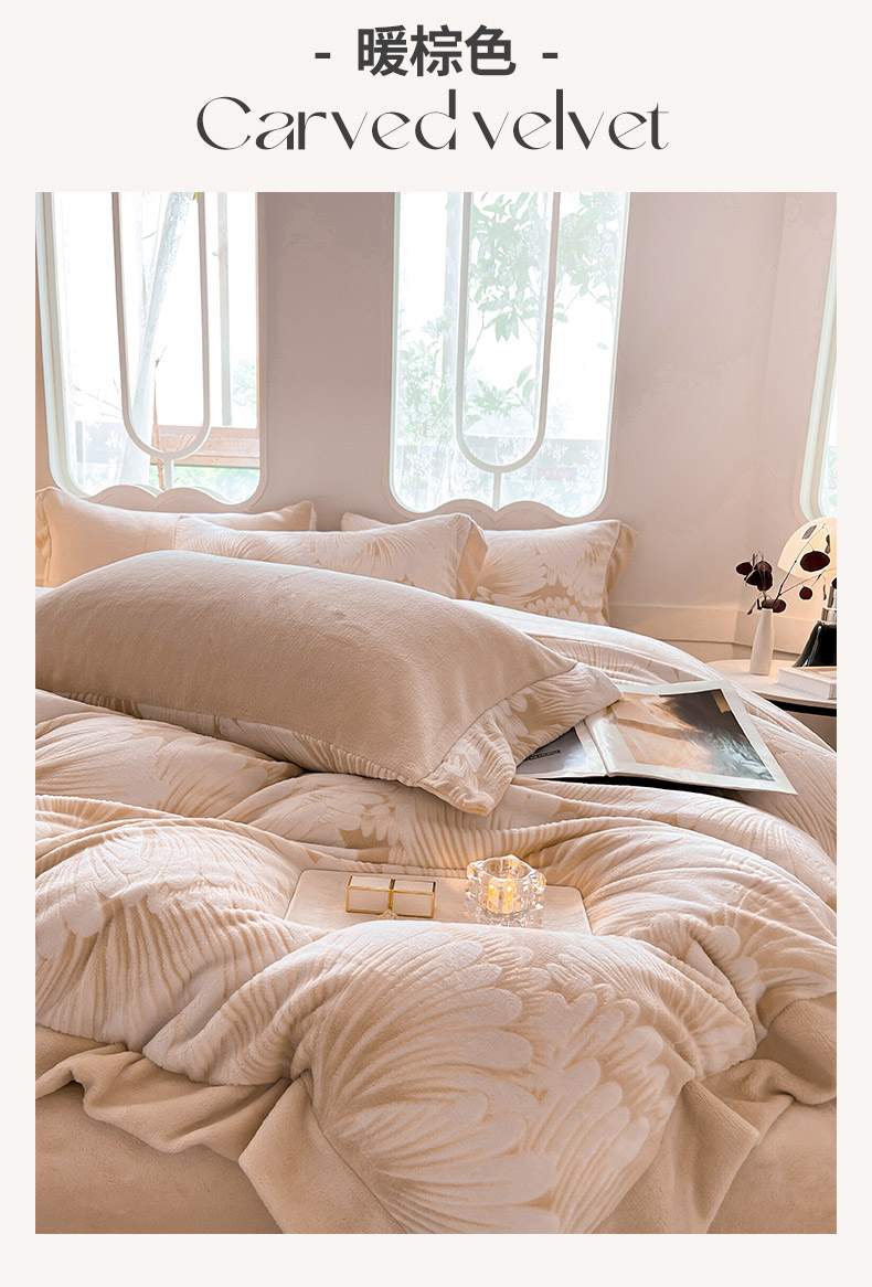 (总)梦馨家纺2024新款A类雕花绒牛奶绒兔绒婴儿绒保暖四件套-安贝拉,安贝拉-静谧粉,安贝拉-琉璃蓝,安贝拉-暖棕色,安贝拉-雅士灰