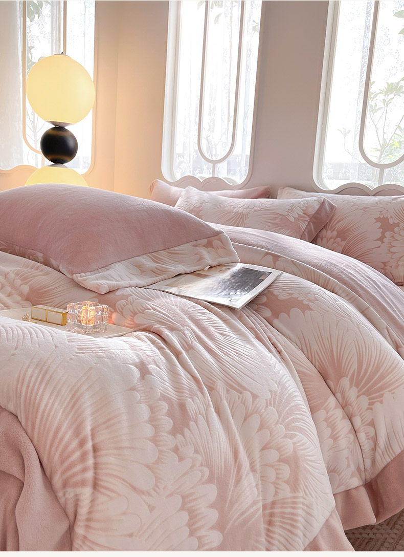 (总) 2024新款A类雕花绒牛奶绒宝宝绒兔绒新品保暖四件套套件 -米鹿提,白桃色,淡雅米,风信紫,琉璃蓝,芝奶绿