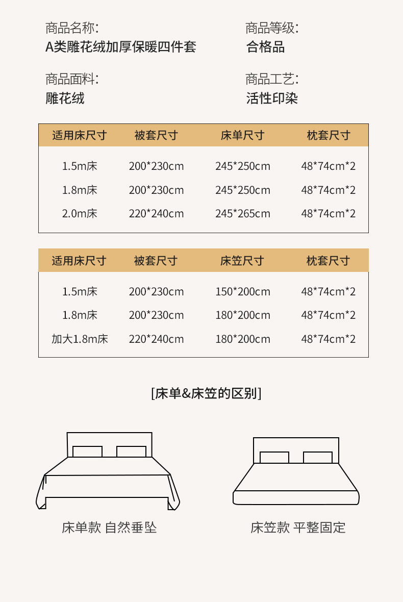 商品名称:梦馨家纺 2024新款牛奶绒四件套宝宝绒被套兔绒床单婴儿绒保暖套件-安贝拉 安贝拉-暖棕色