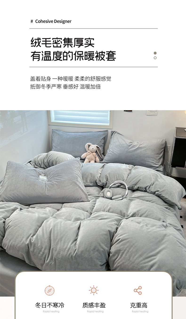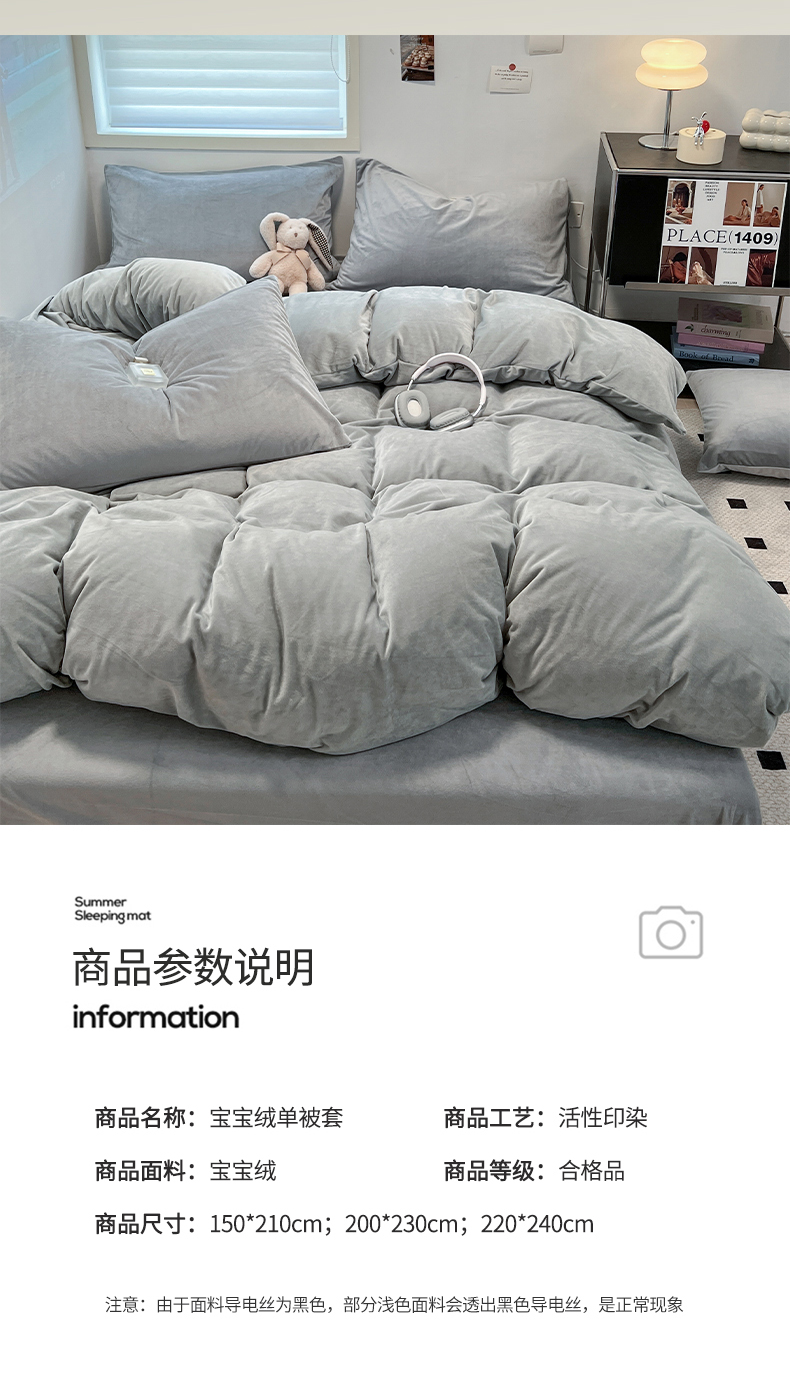 商品名称:盛馨家纺 2024新款高克重加厚保暖纯色宝宝绒系列单被套 银灰