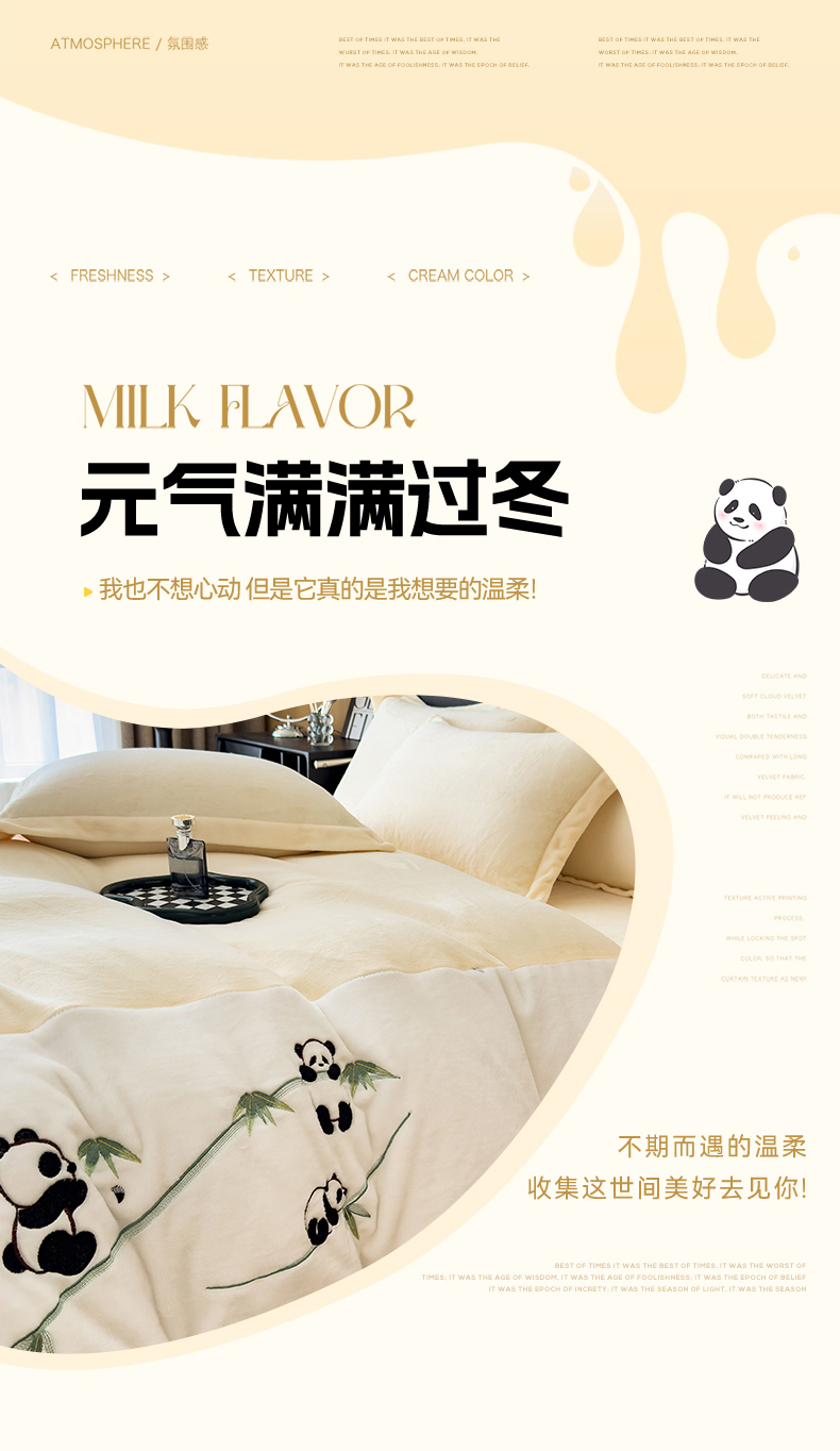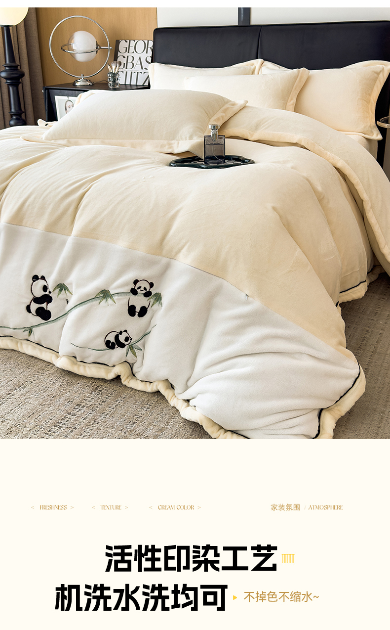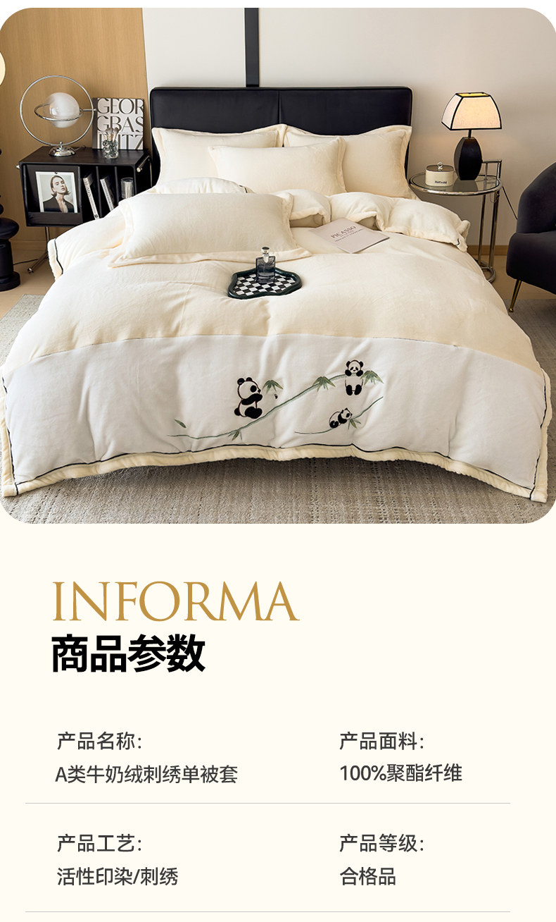 商品名称:2024新款A类牛奶绒熊猫刺绣夹棉单被套 萌宝-米白