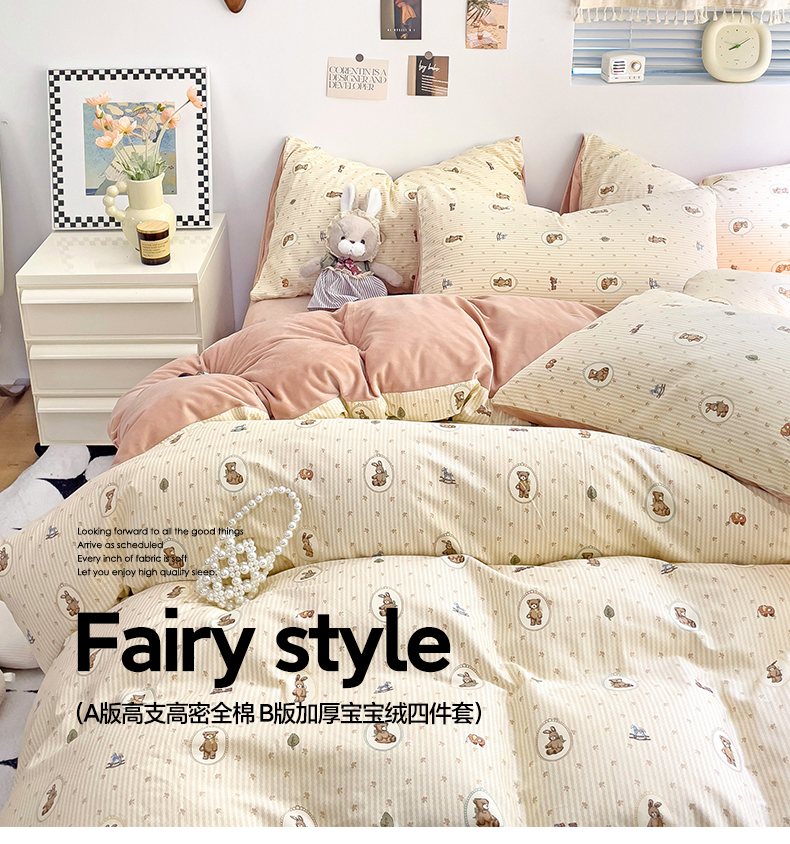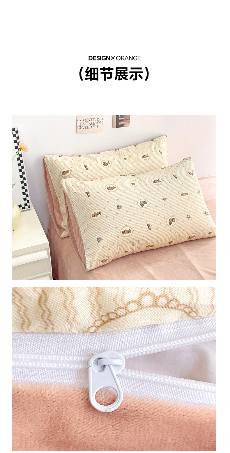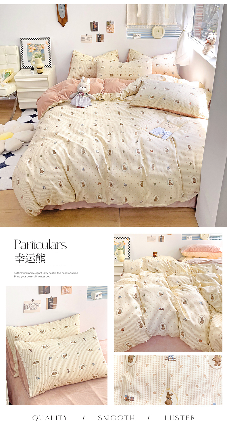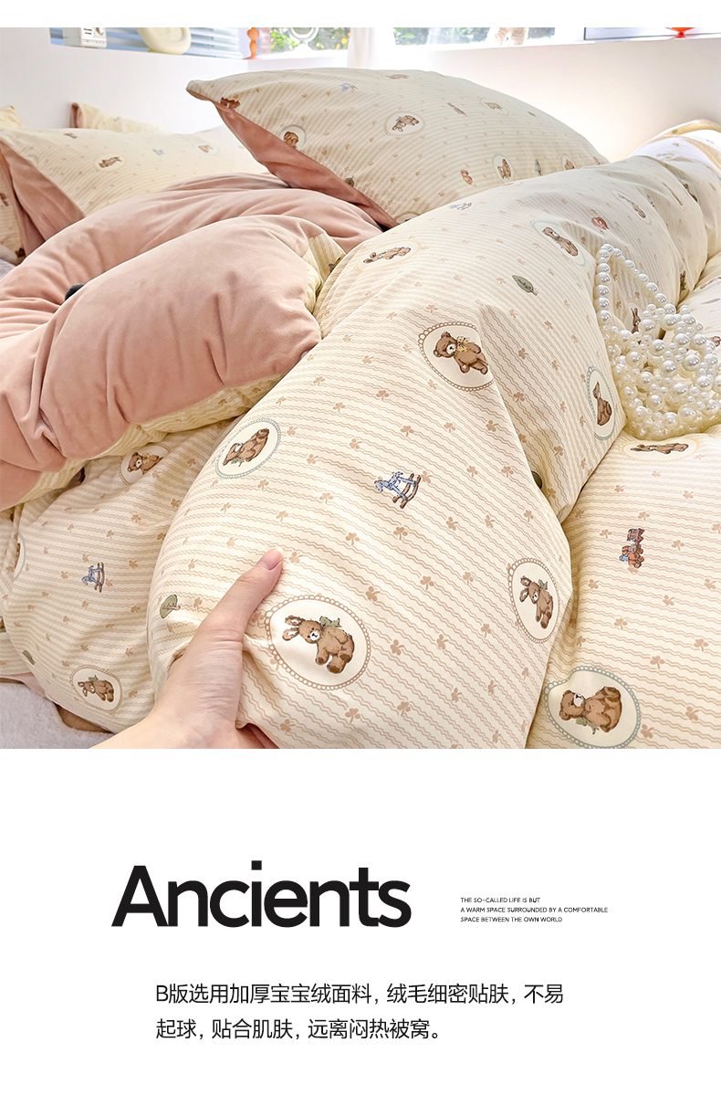 商品名称:盛馨家纺 2024秋冬棉加绒13372全棉宝宝绒牛奶绒床单床笠保暖绒四件套 幸运熊