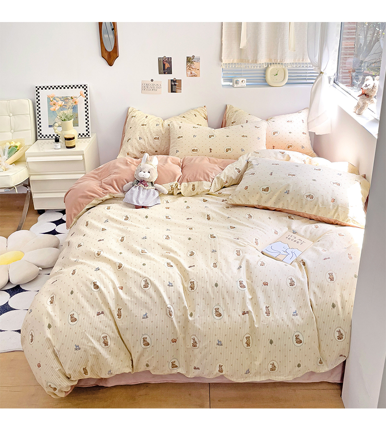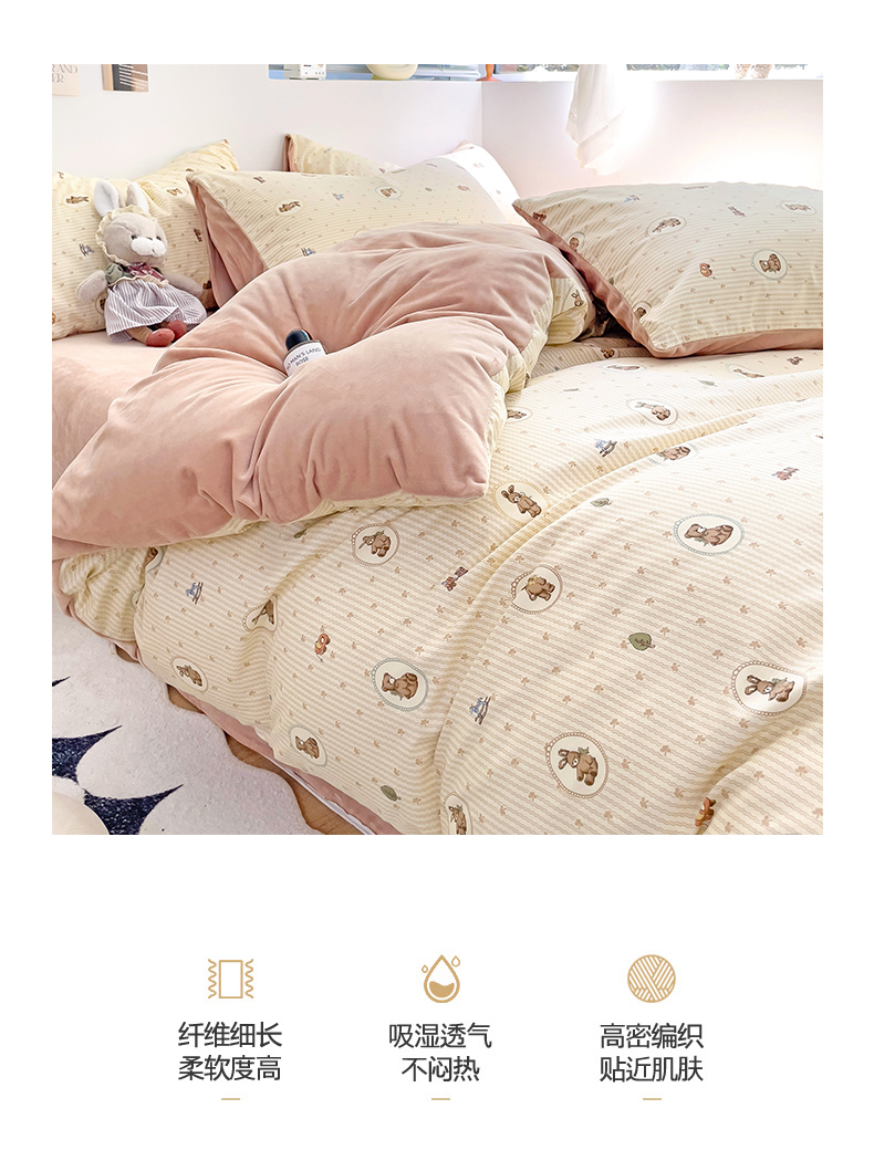 盛馨家纺 2024秋冬棉加绒13372全棉宝宝绒牛奶绒床单床笠保暖绒四件套 幸运熊