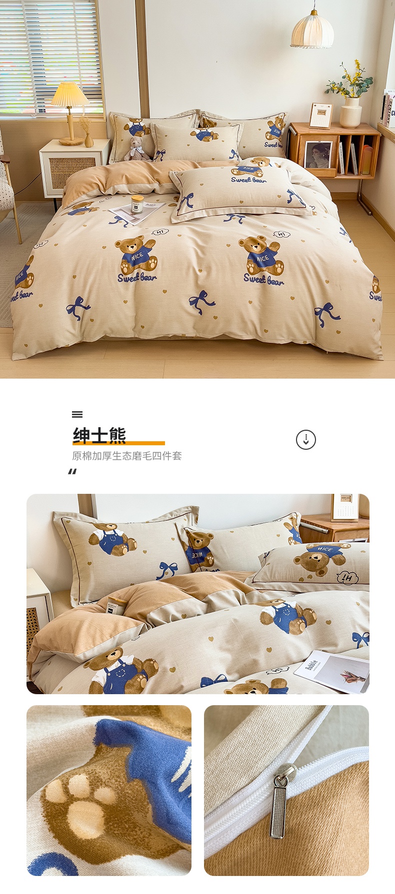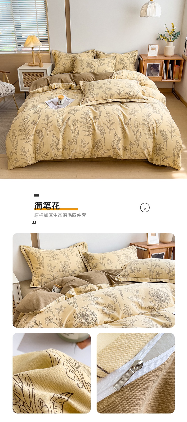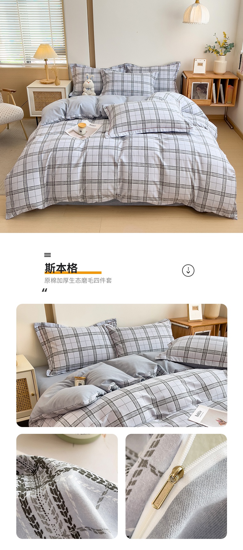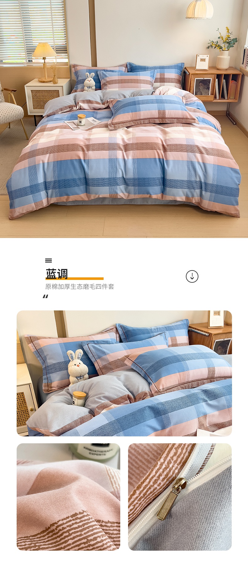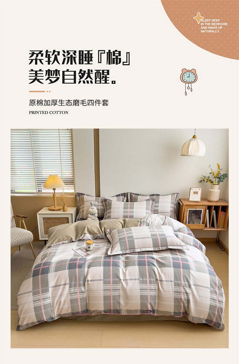商品名称:芃成家纺 2024新款原棉加厚生态磨毛四件套 凯尼格