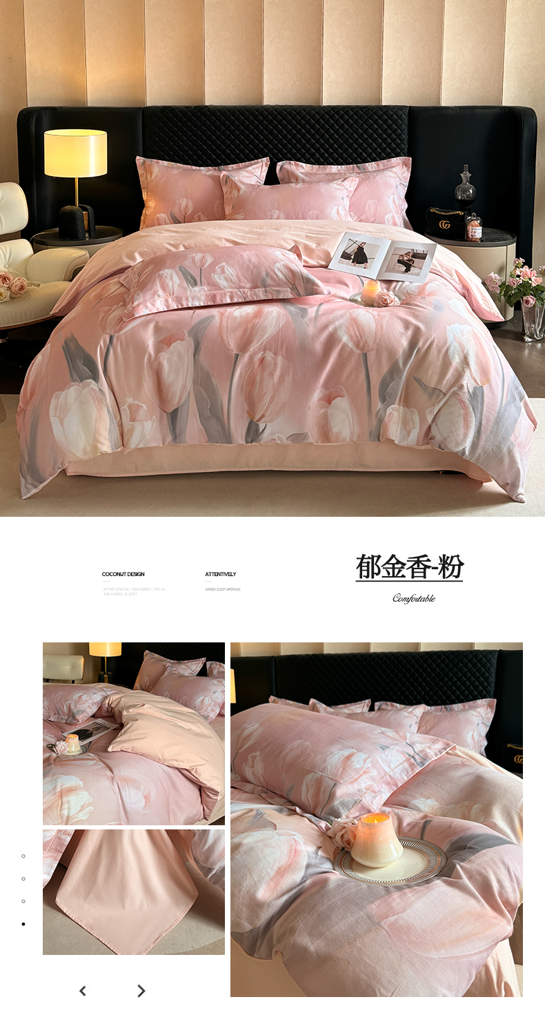 涵宸家纺 2024新款全棉磨毛数码印花四件套 郁金香-粉