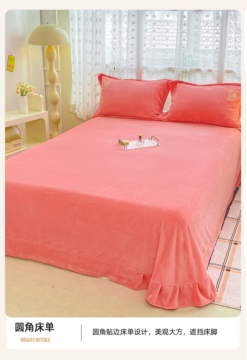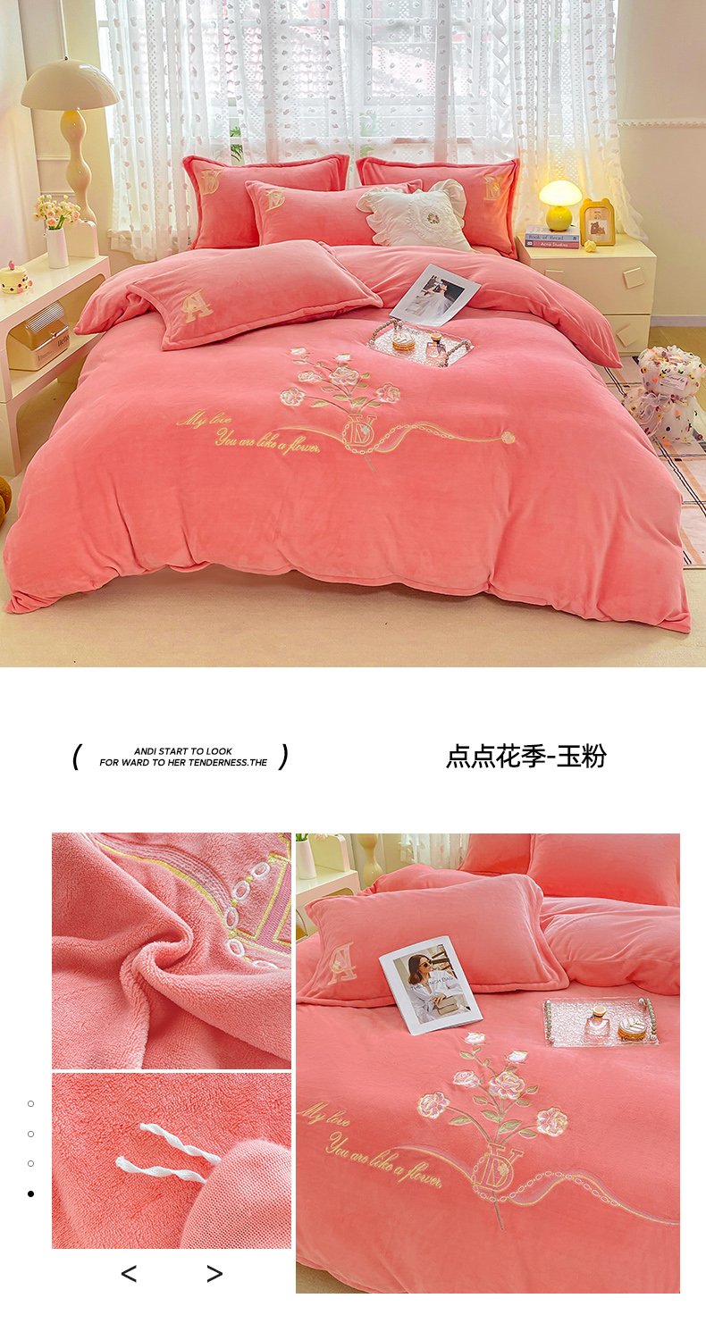 晶缦家纺 2024新款高克重牛奶绒刺绣花四件套 点点花季-玉粉