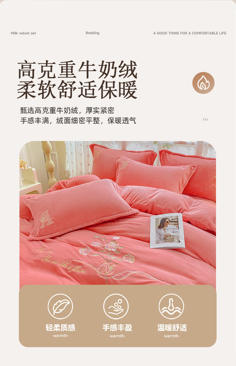 (总)晶缦家纺 2025新款超高克重保暖太阳绒刺绣花四件套/高克重牛奶绒宝宝绒婴儿绒四件套,花觅-豆沙,花觅-蓝灰,花觅-奶咖,花觅-清新绿,花觅-薰衣紫