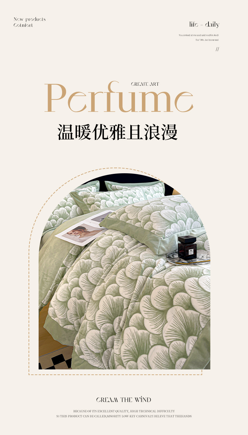 芷卧 2025新款高克重雕花牛奶绒夹棉床盖款四件套 初次邂逅,初次邂逅