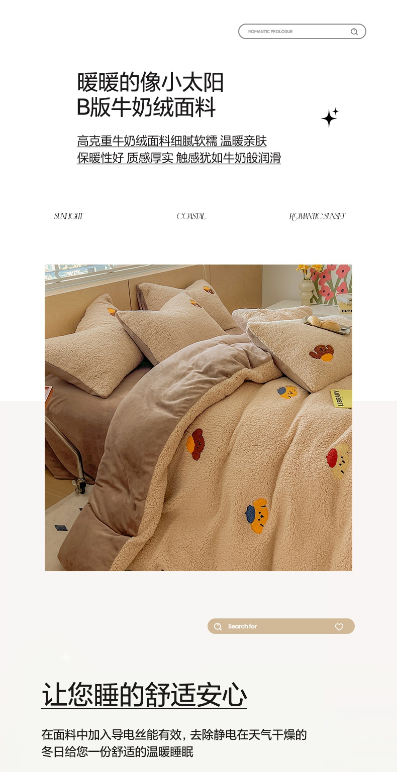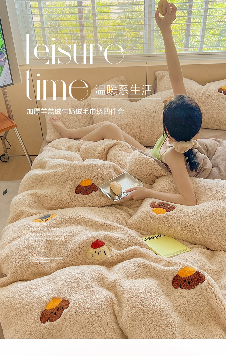 当前位置: 91家纺网 > 商品网购 > 床品套件 > 四件套 > 牛奶绒四件套 > 晨曦家纺 2024新款加厚羊羔绒牛奶绒毛巾绣四件套 羊羔绒-萌萌狗咖色