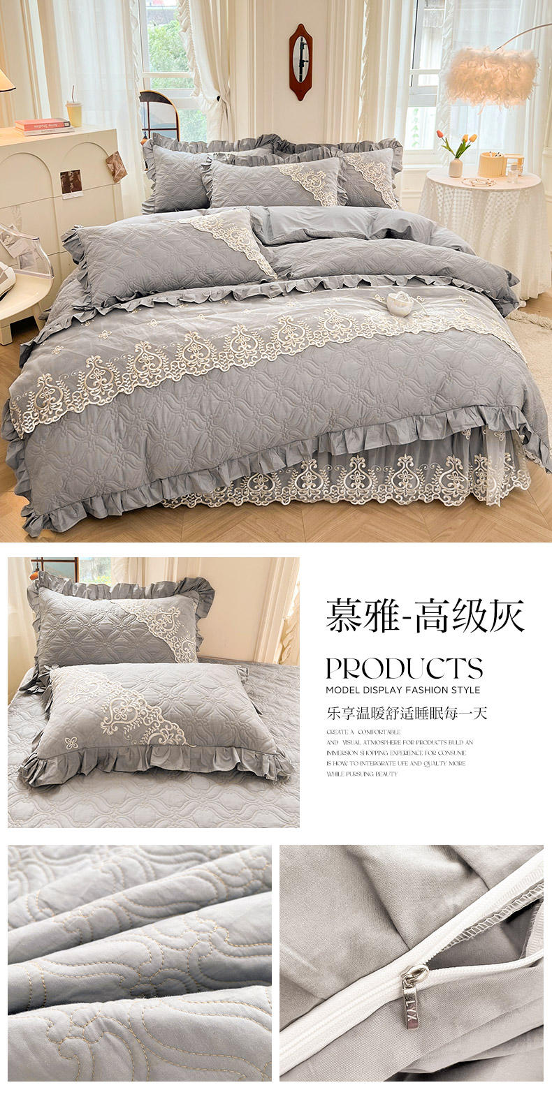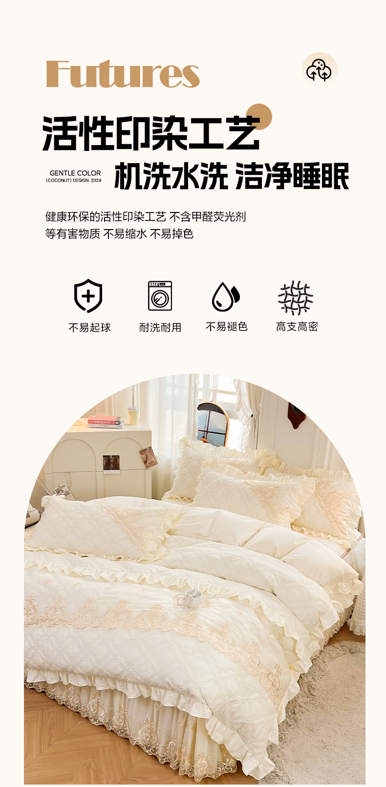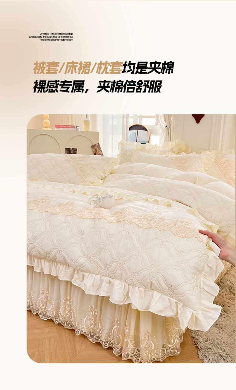 当前位置: 91家纺网 > 商品网购 > 床品套件 > 四件套 > 全棉普通四件套 > 罗艺轩 2024新款公主风全棉加厚可脱卸床笠式床裙四件套 慕雅-奶昔