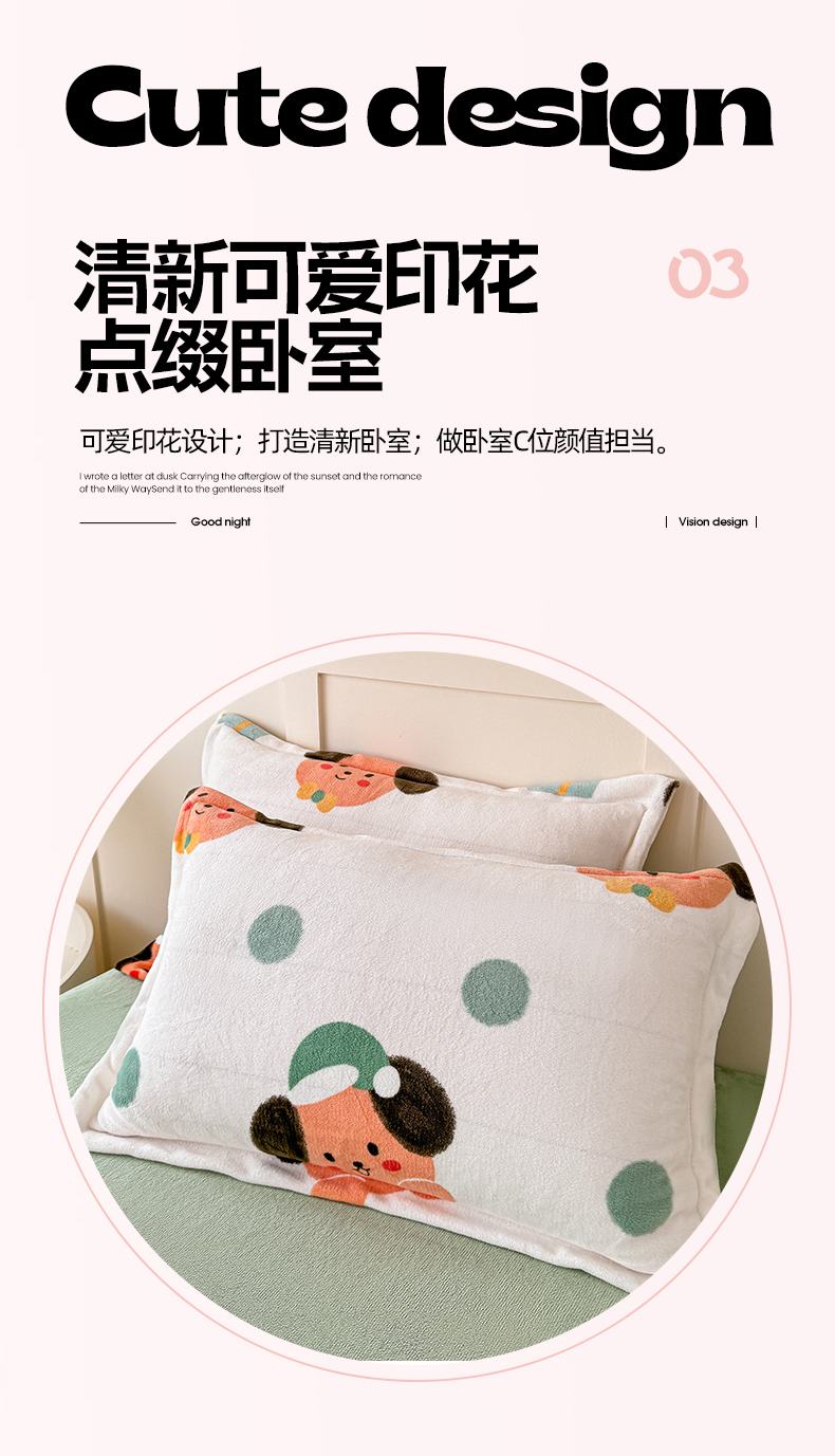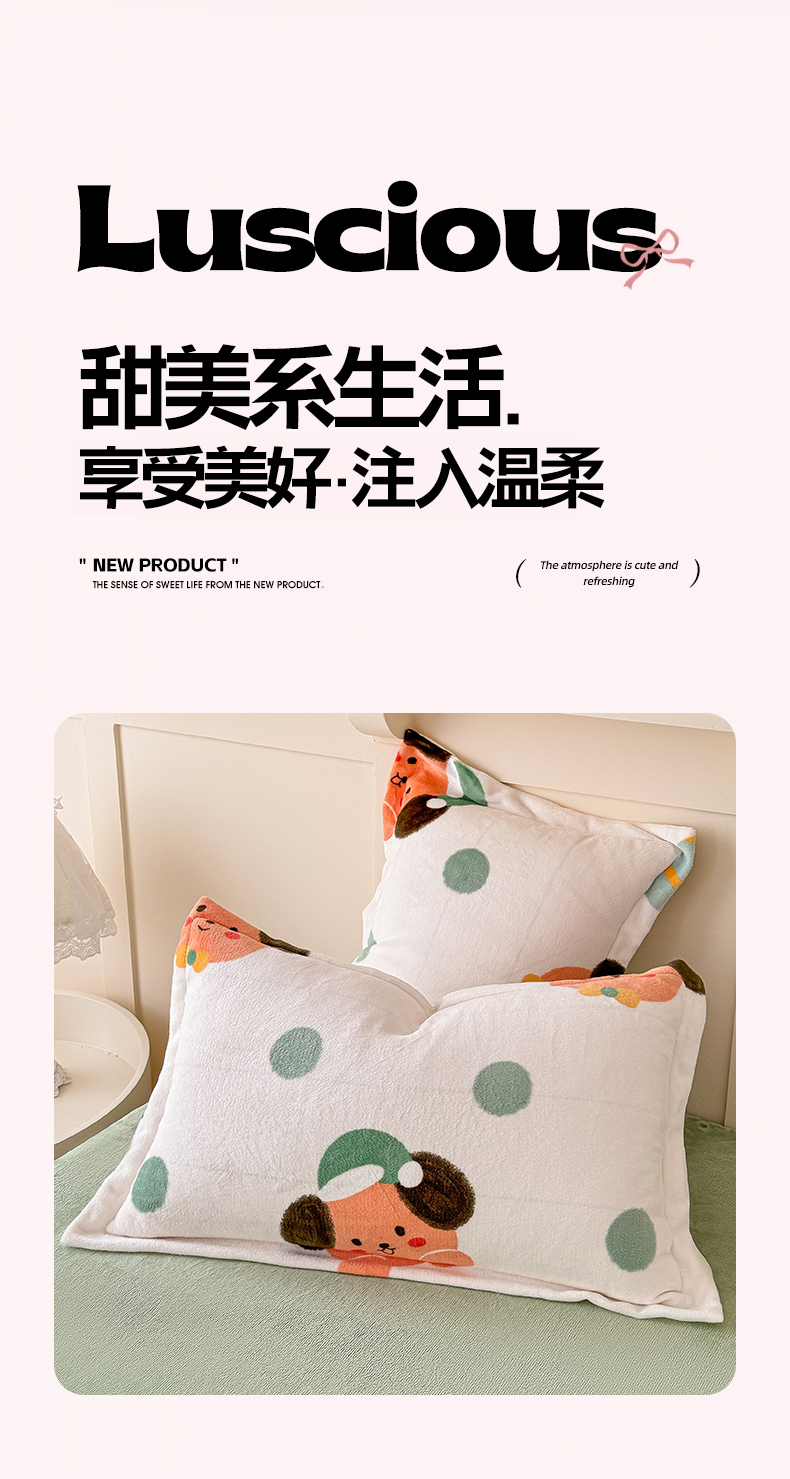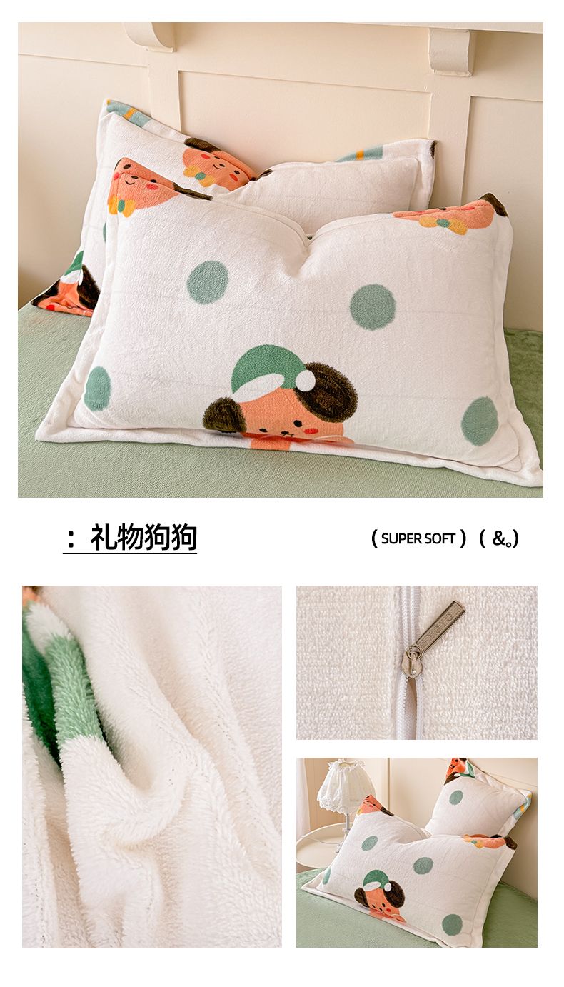 妖妖家纺 2024新款200克牛奶绒单枕套 礼物狗狗