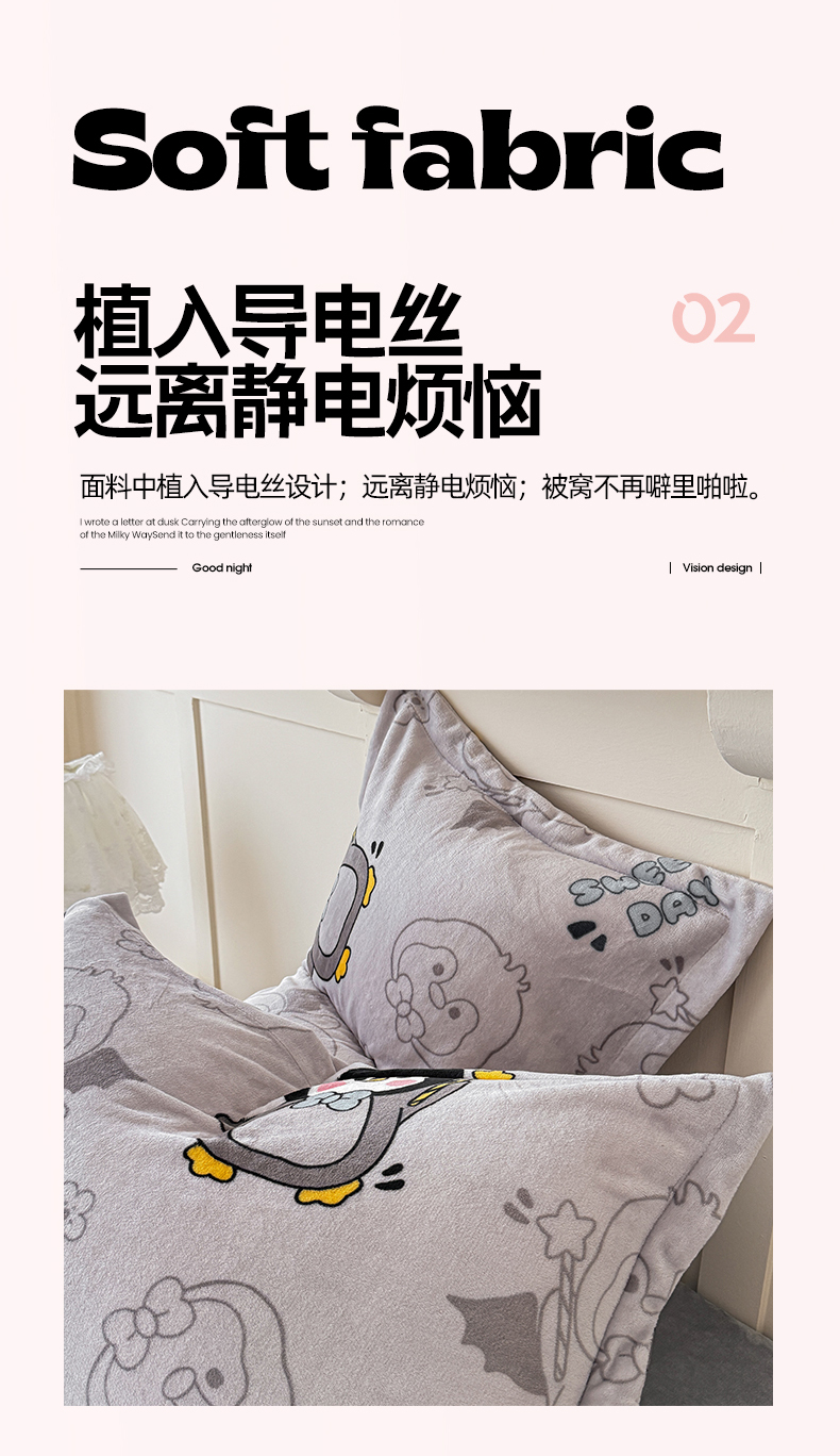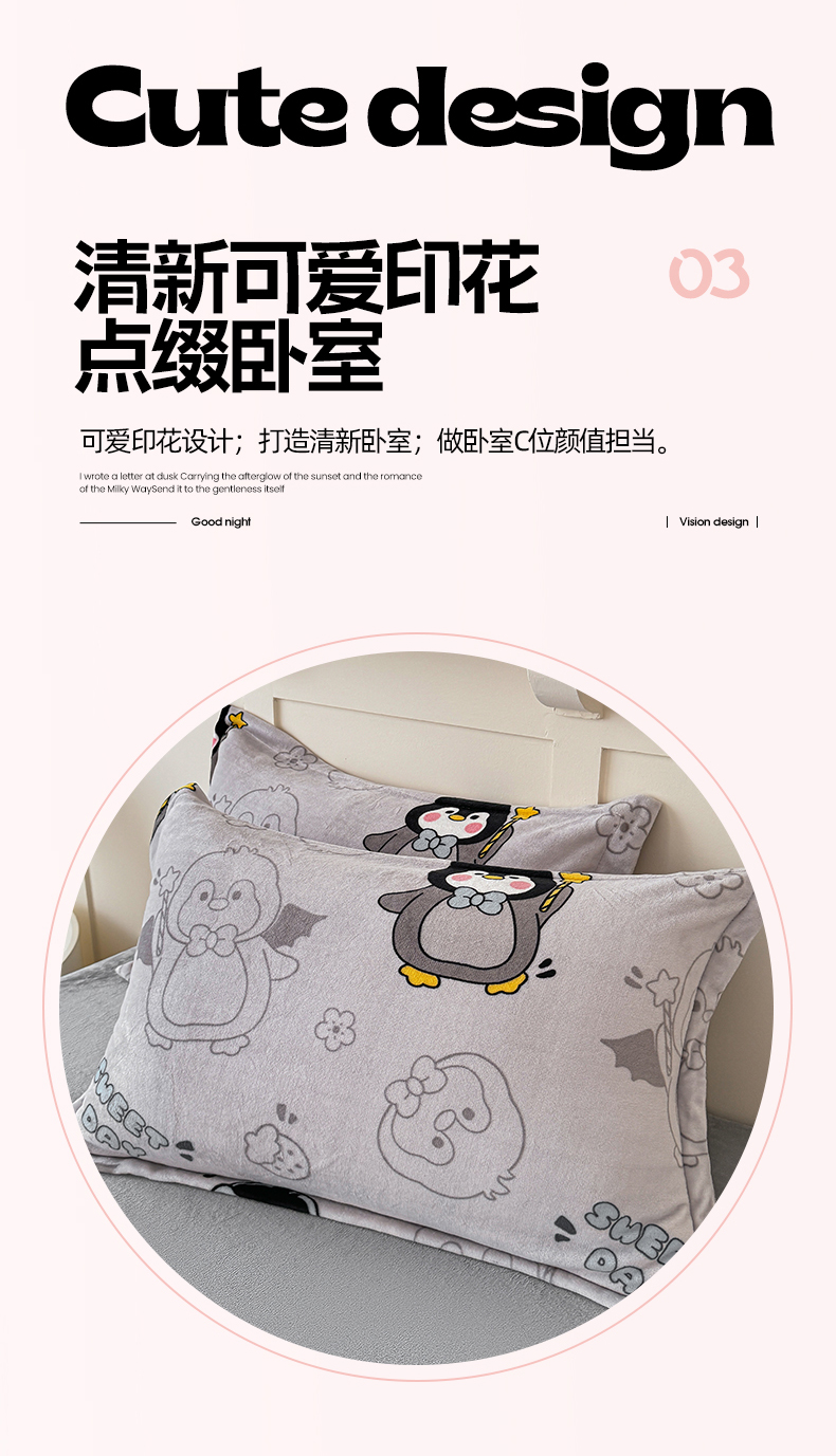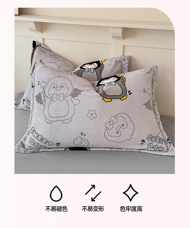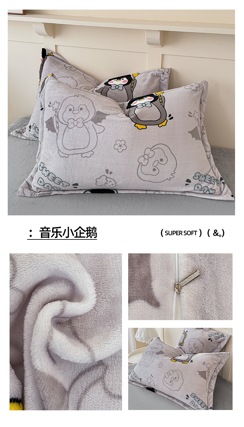 商品名称:妖妖家纺 2024新款200克牛奶绒单枕套 音乐小企鹅