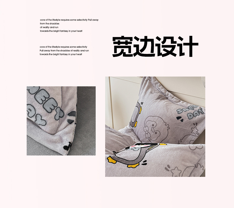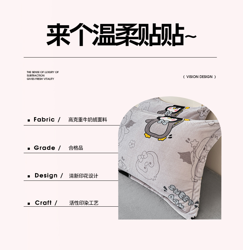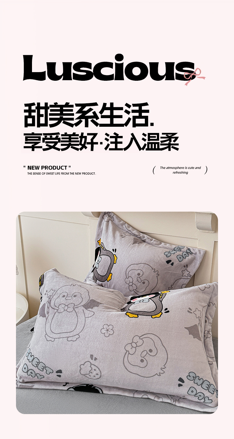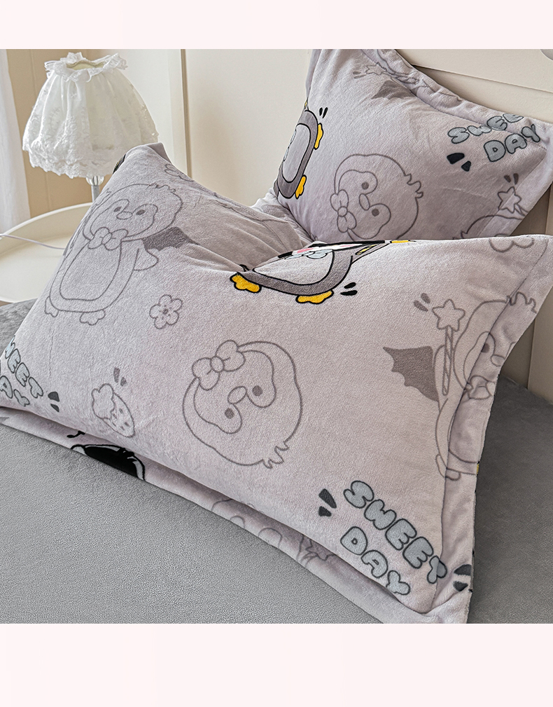 商品名称:妖妖家纺 2024新款200克牛奶绒单枕套 音乐小企鹅