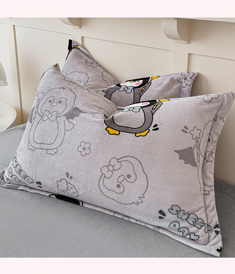 妖妖家纺 2024新款200克牛奶绒单枕套 音乐小企鹅