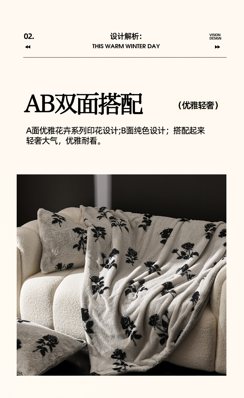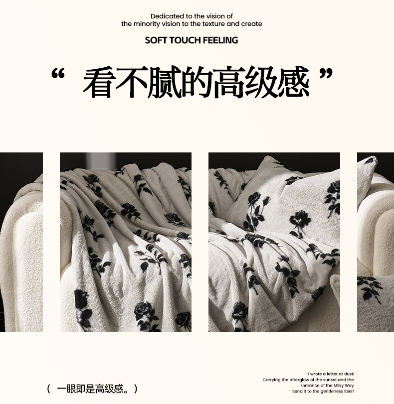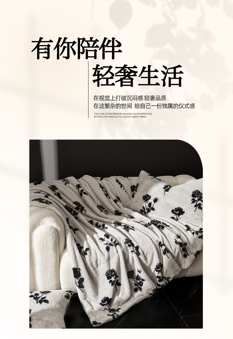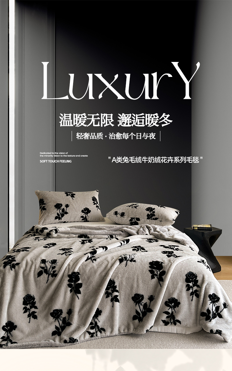 商品名称:网客 2024新款兔毛绒毯-繁花系列 告白玫瑰