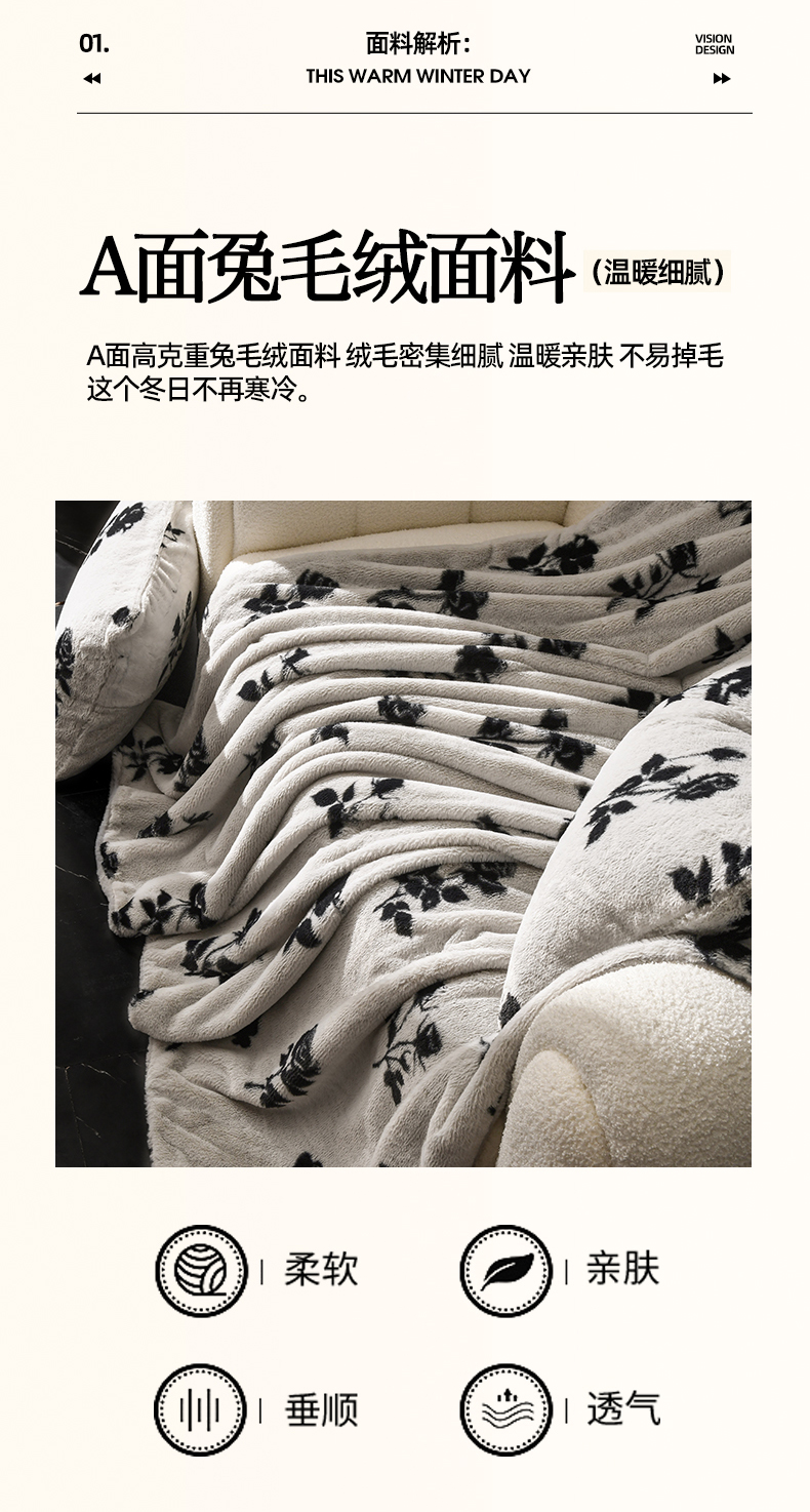 网客 2024新款兔毛绒毯-繁花系列 告白玫瑰