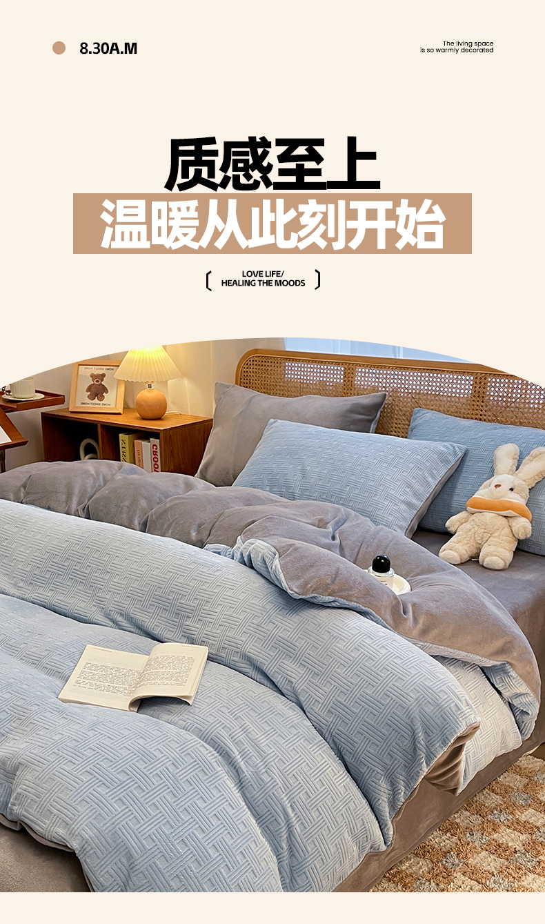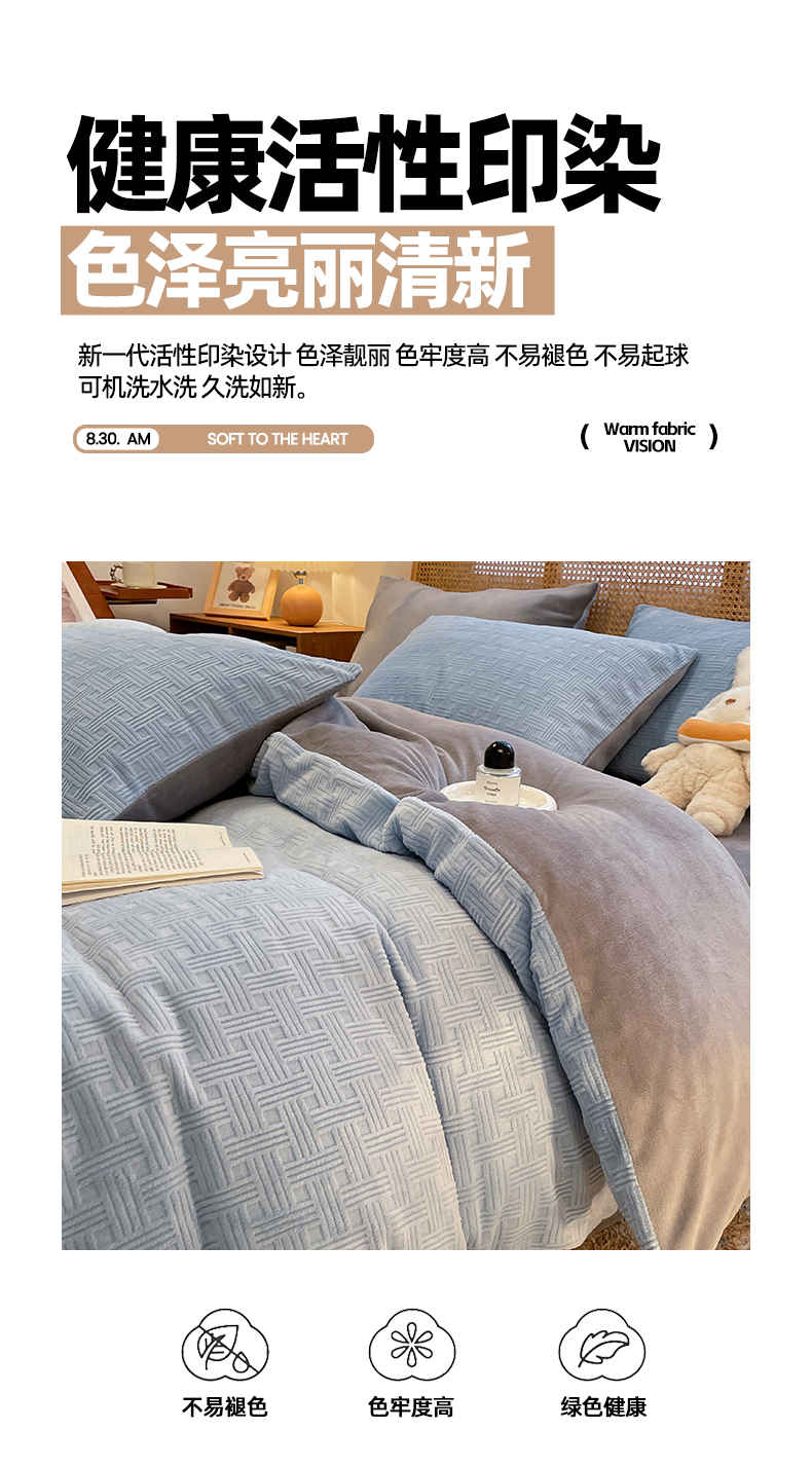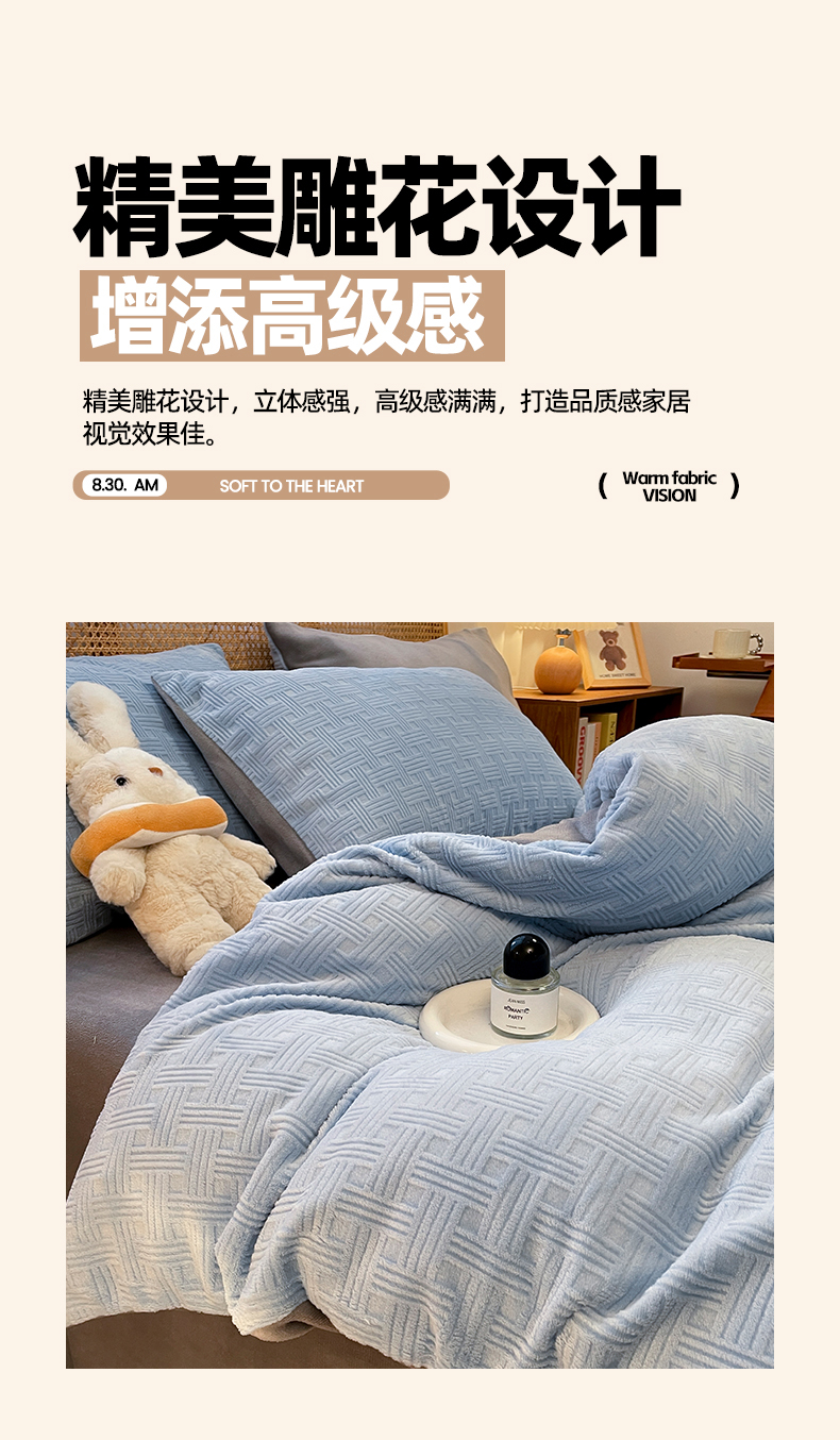 当前位置: 91家纺网 > 商品网购 > 床品套件 > 四件套 > 牛奶绒四件套 > 莱茵家居 2024新款A类高克重雕花牛奶绒四件套-糖果格 糖果格-蓝灰
