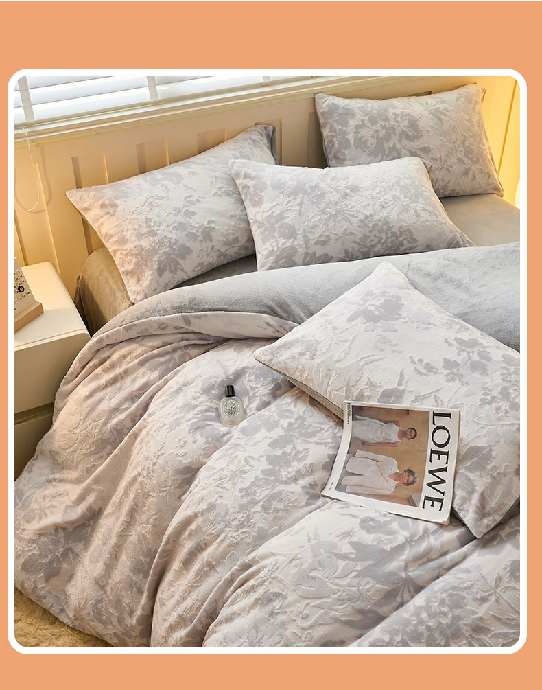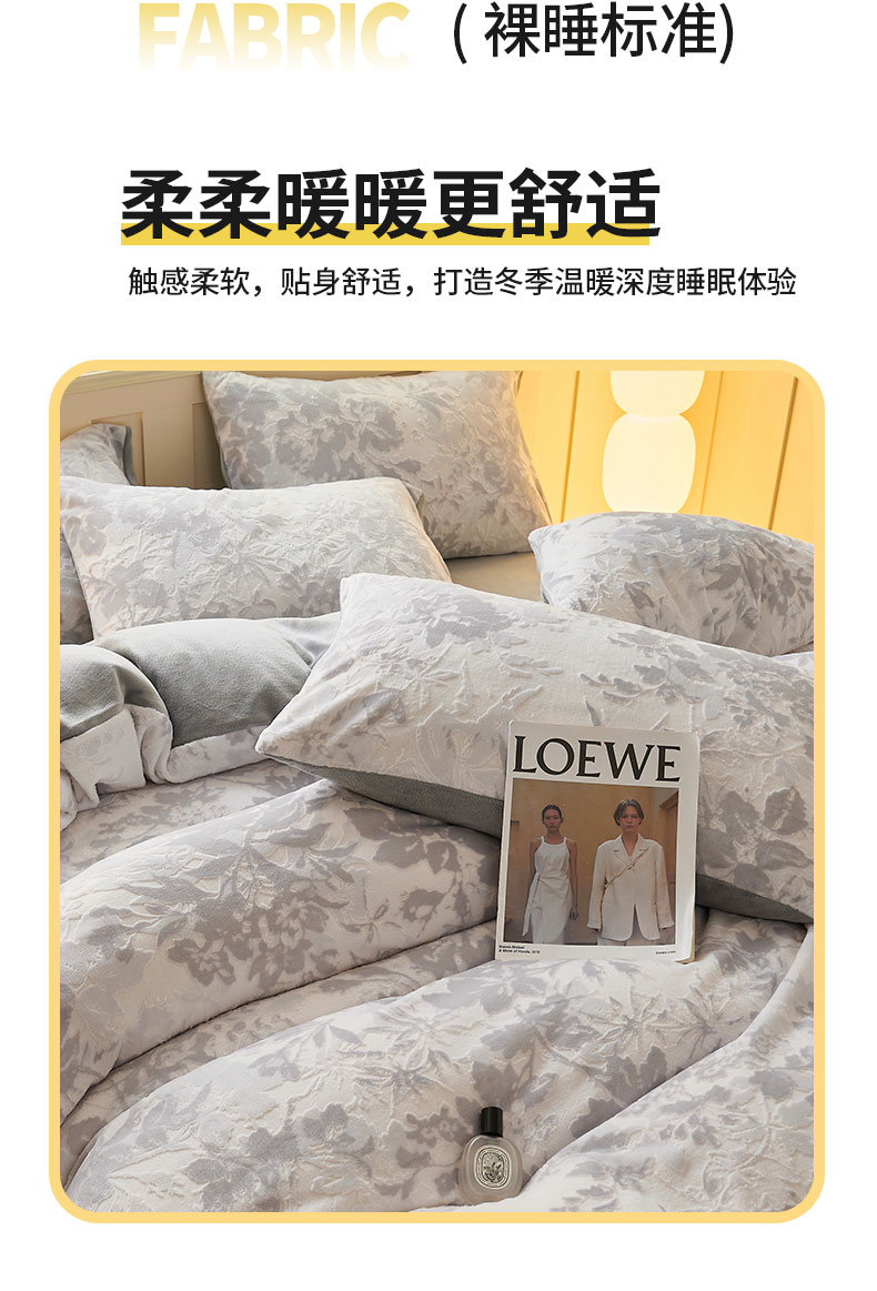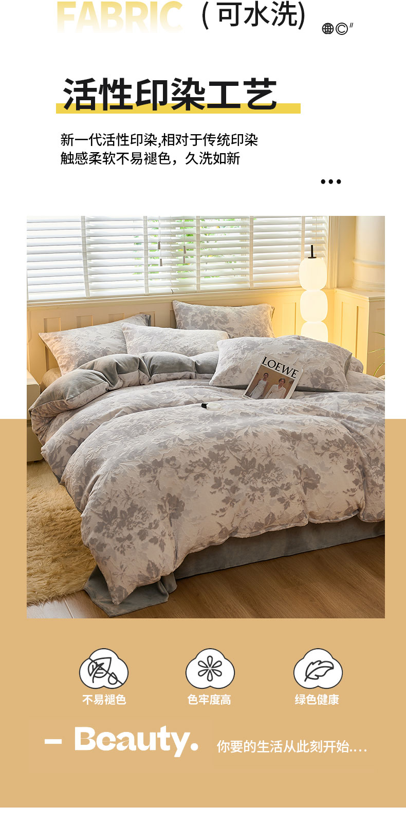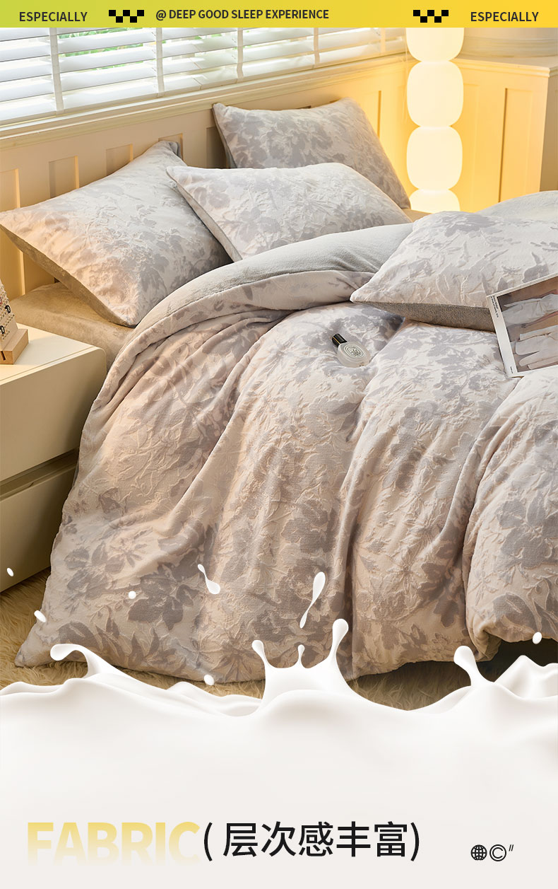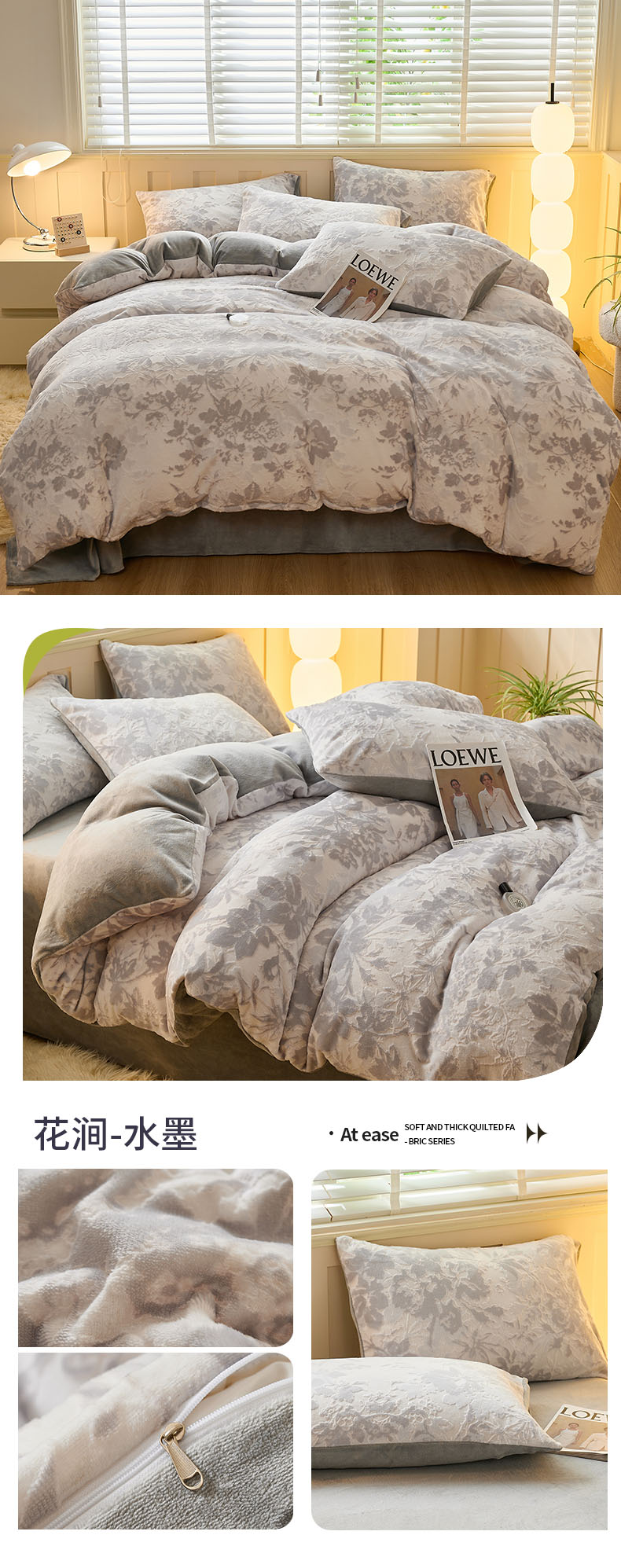 鑫琪莱家纺 2024新款着色烂花牛奶绒四件套 花涧-水墨
