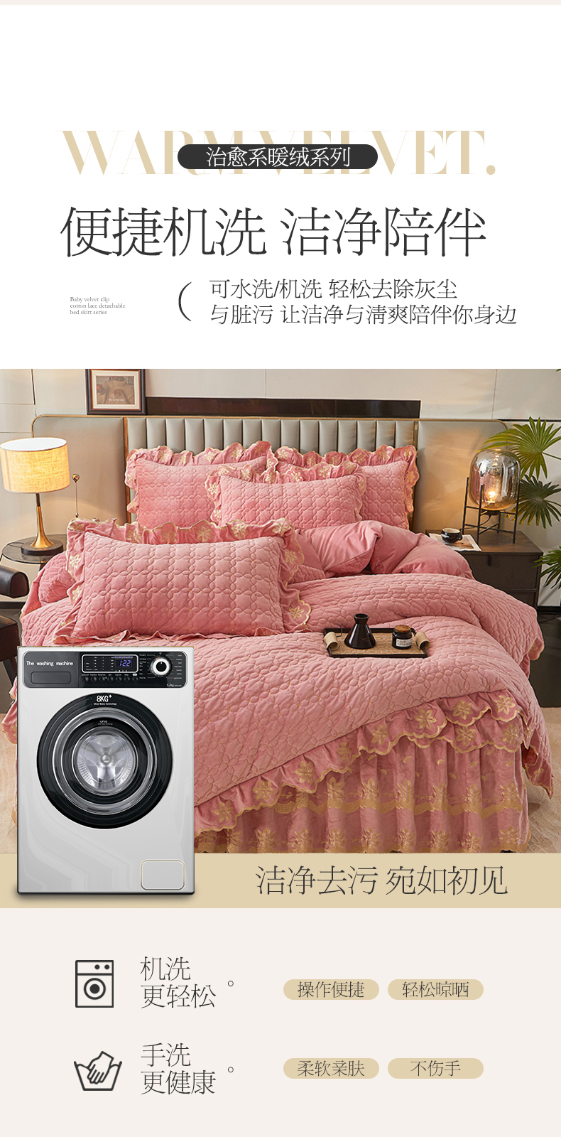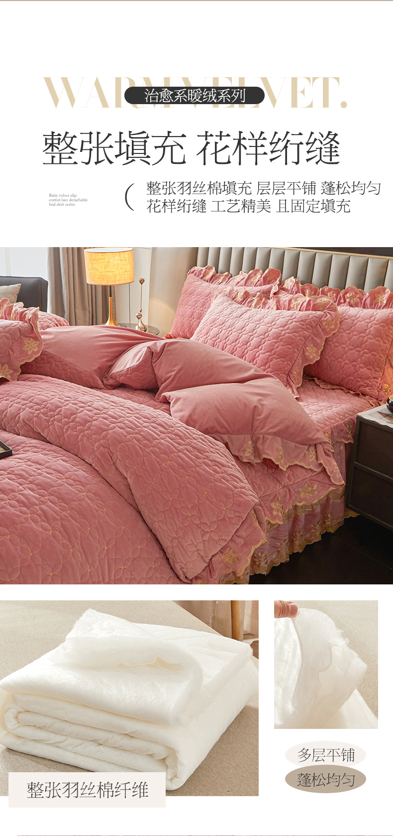 • 91家纺网 家纺一手货源 找家纺 锦格 2024新款浪漫宝宝绒夹棉可拆洗床裙三件套 盛世芳华 梦粉