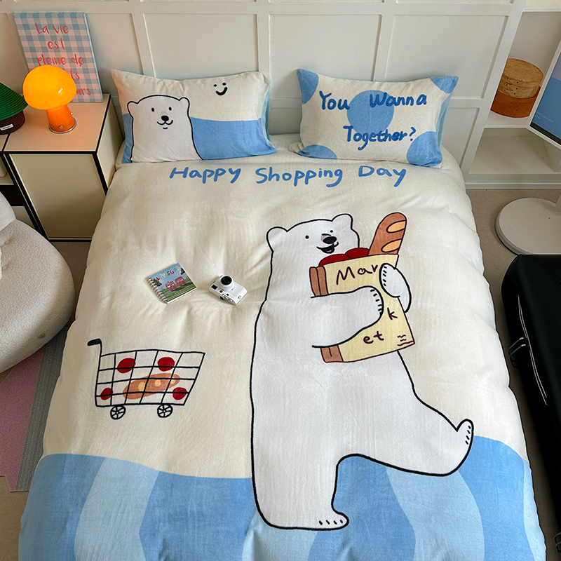 商品名称:桃喜 2024新款大版数码印花牛奶绒四件套 春游小狗-绒