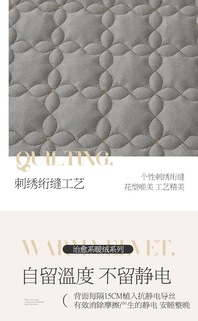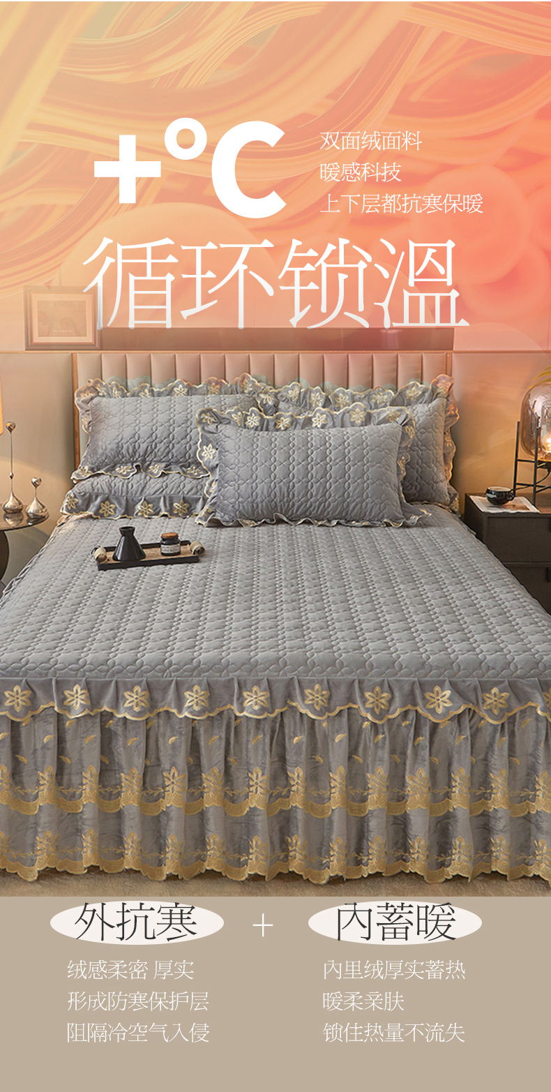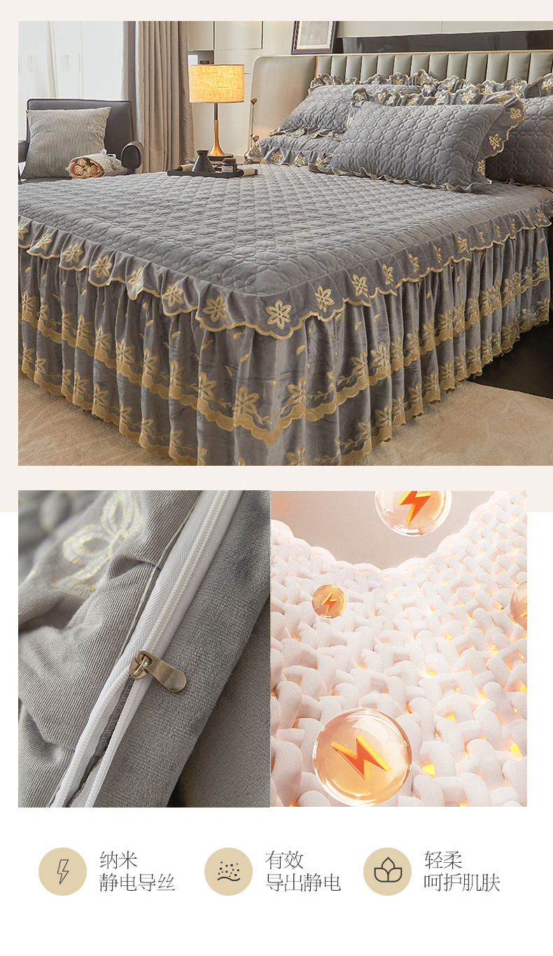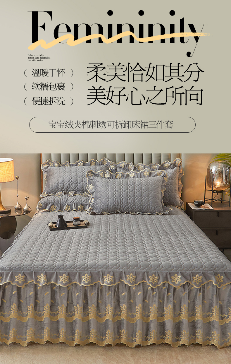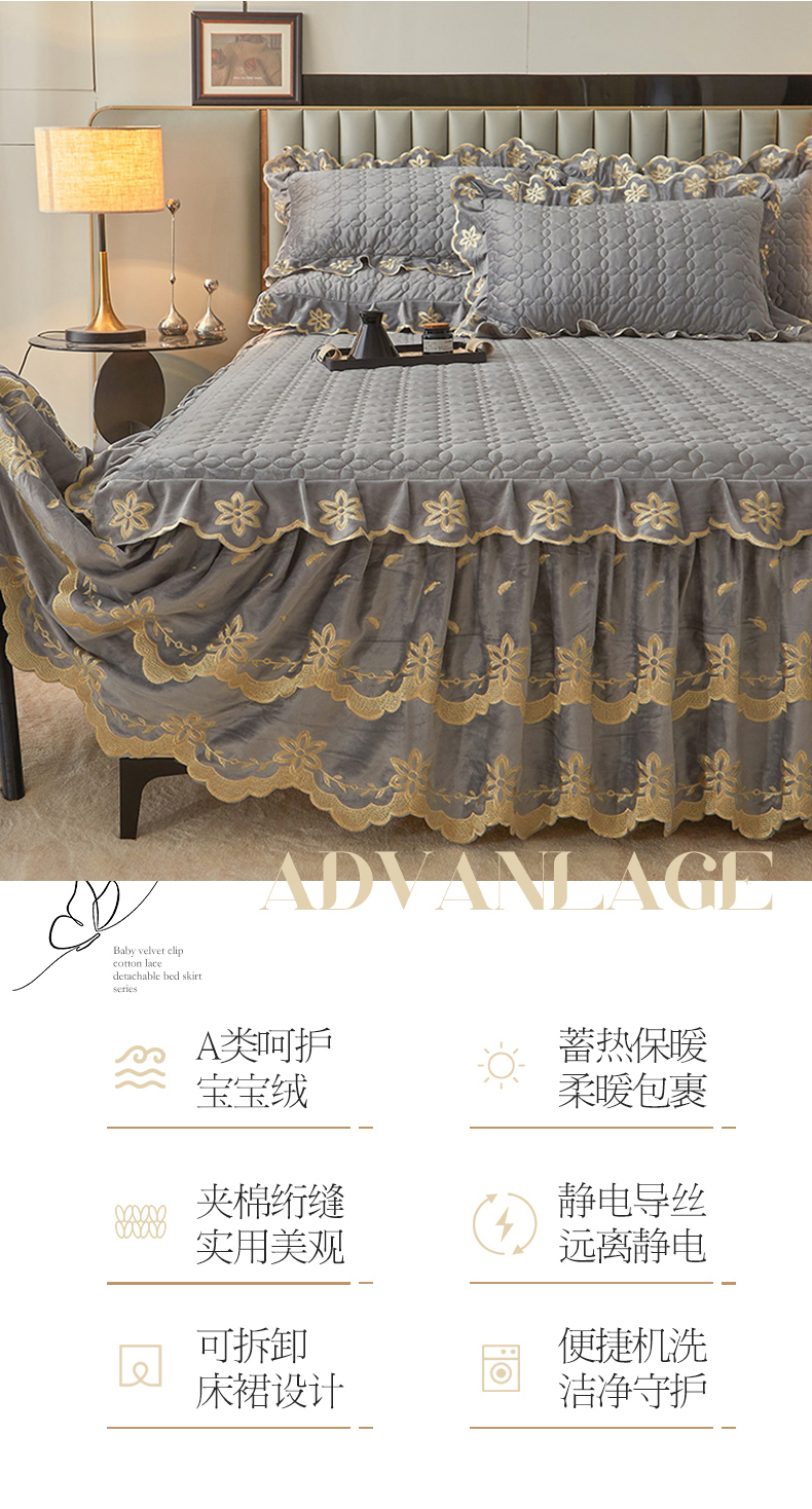 虹星家纺 2024新款可拆卸宝宝绒夹棉床裙三件套-盛世芳华 盛世芳华 梦灰