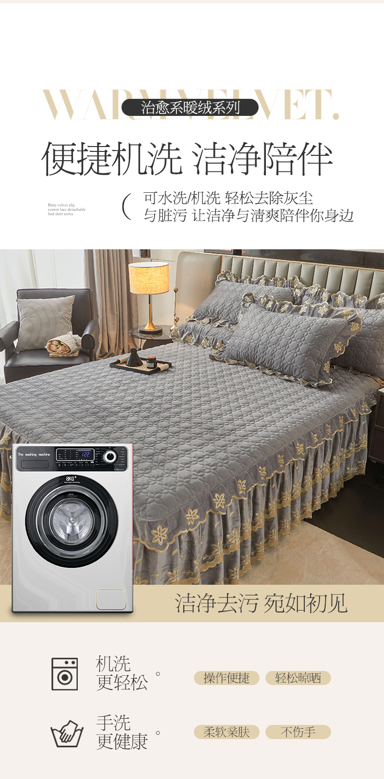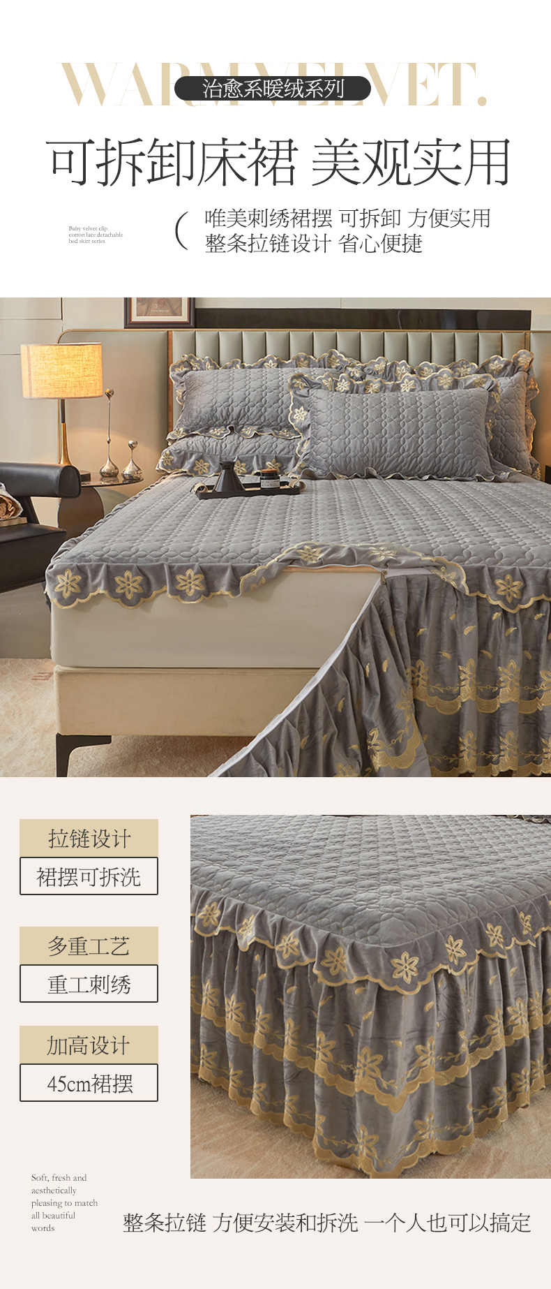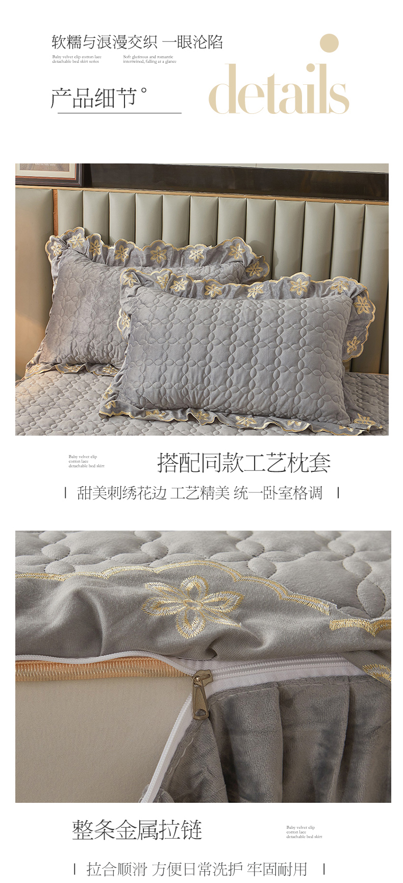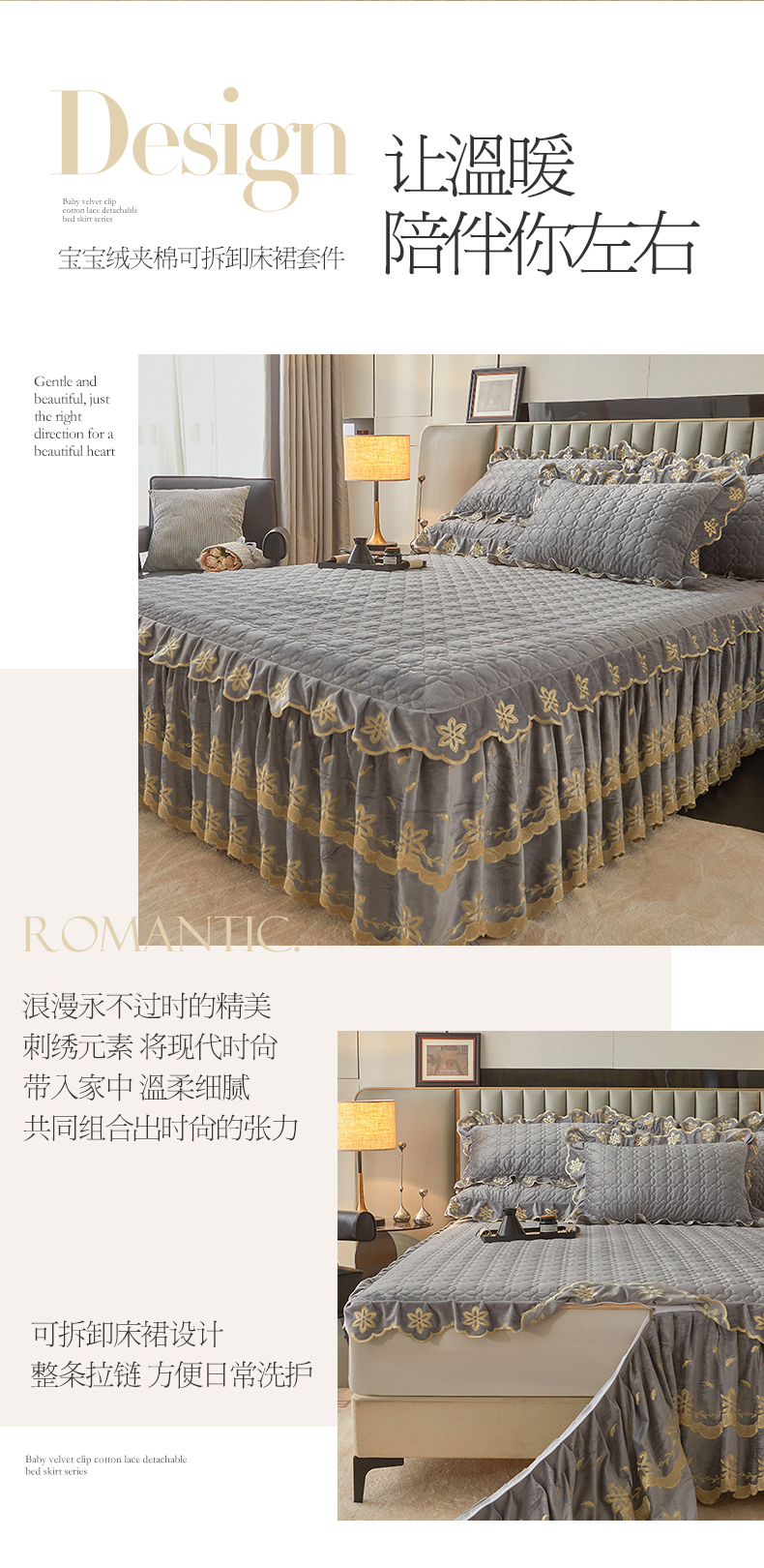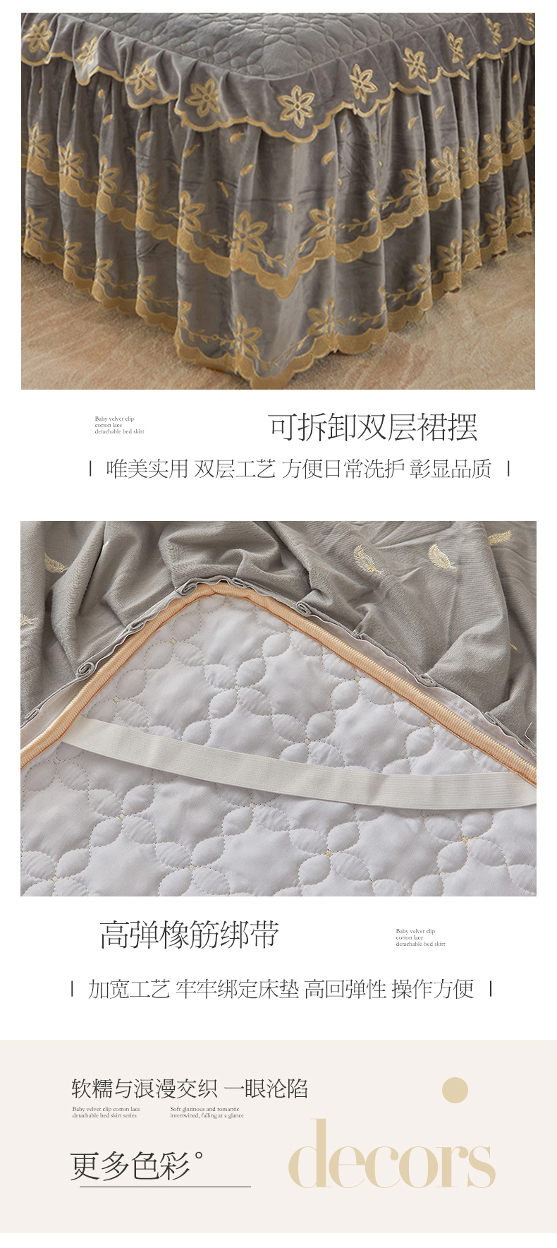 虹星家纺 2024新款可拆卸宝宝绒夹棉床裙三件套-盛世芳华 盛世芳华 梦灰