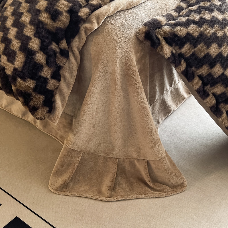 仟网汇 2024新款兔毛绒法式宽边牛奶绒四件套 南法假日