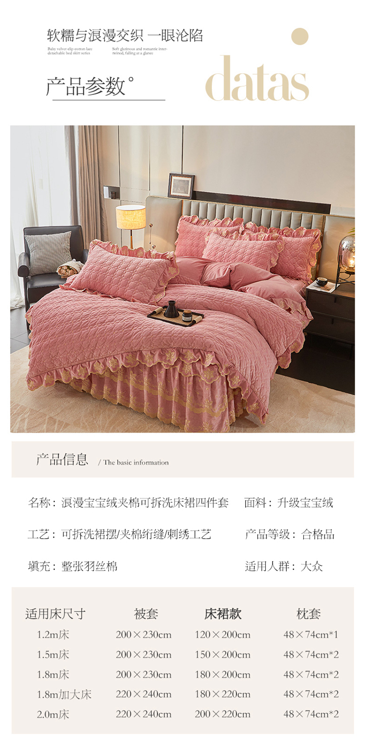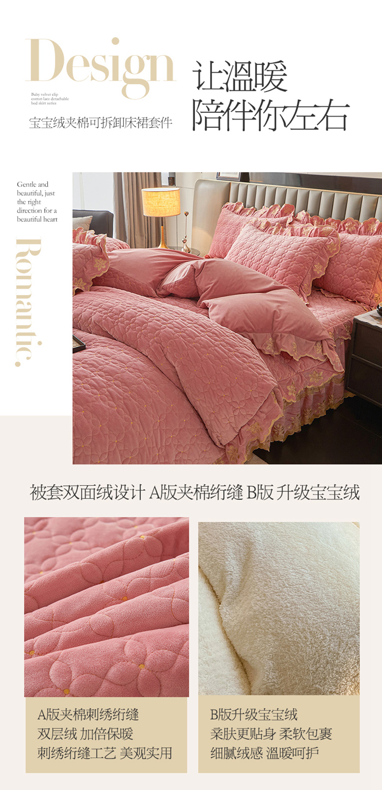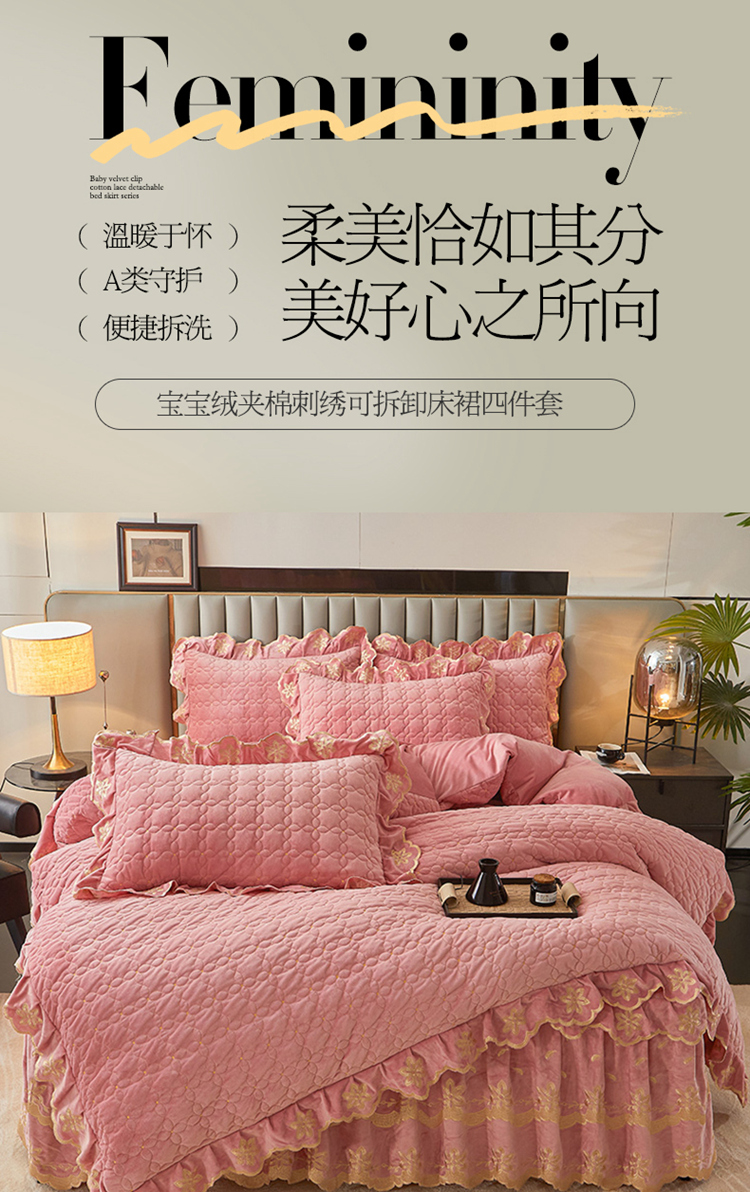 当前位置: 91家纺网 > 商品网购 > 床品套件 > 四件套 > 其它四件套 > 虹星家纺 2024新款可拆卸宝宝绒夹棉床裙三四件套-盛世芳华 盛世芳华 梦粉