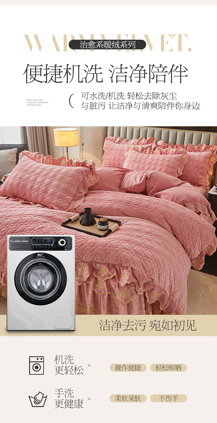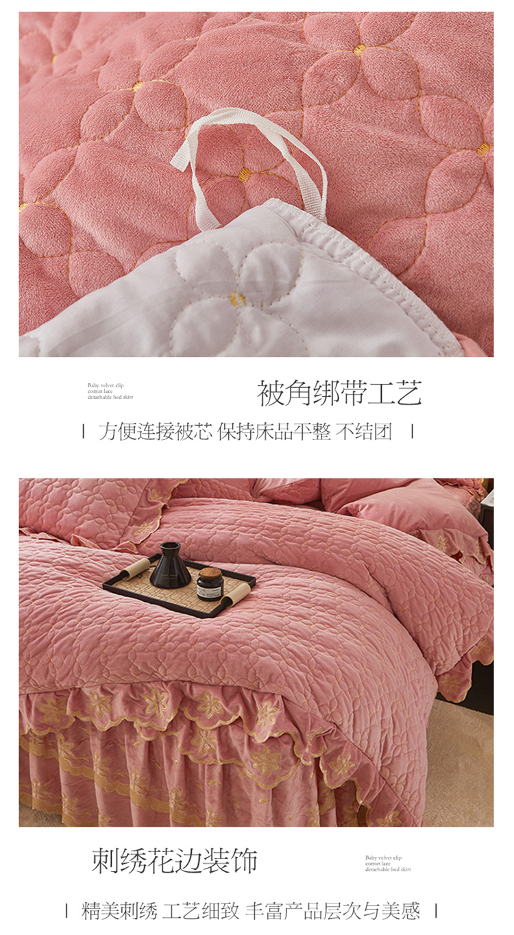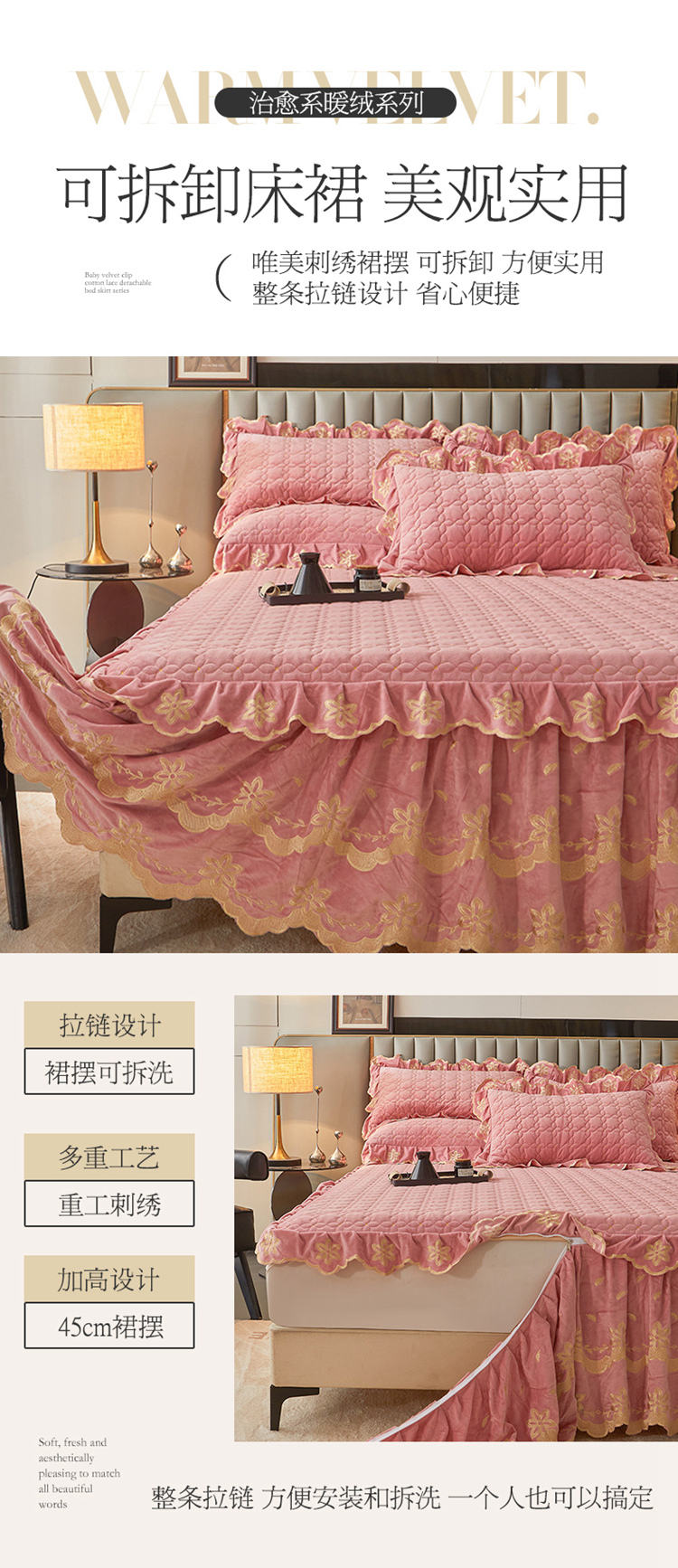 当前位置: 91家纺网 > 商品网购 > 床品套件 > 四件套 > 其它四件套 > 虹星家纺 2024新款可拆卸宝宝绒夹棉床裙三四件套-盛世芳华 盛世芳华 梦粉