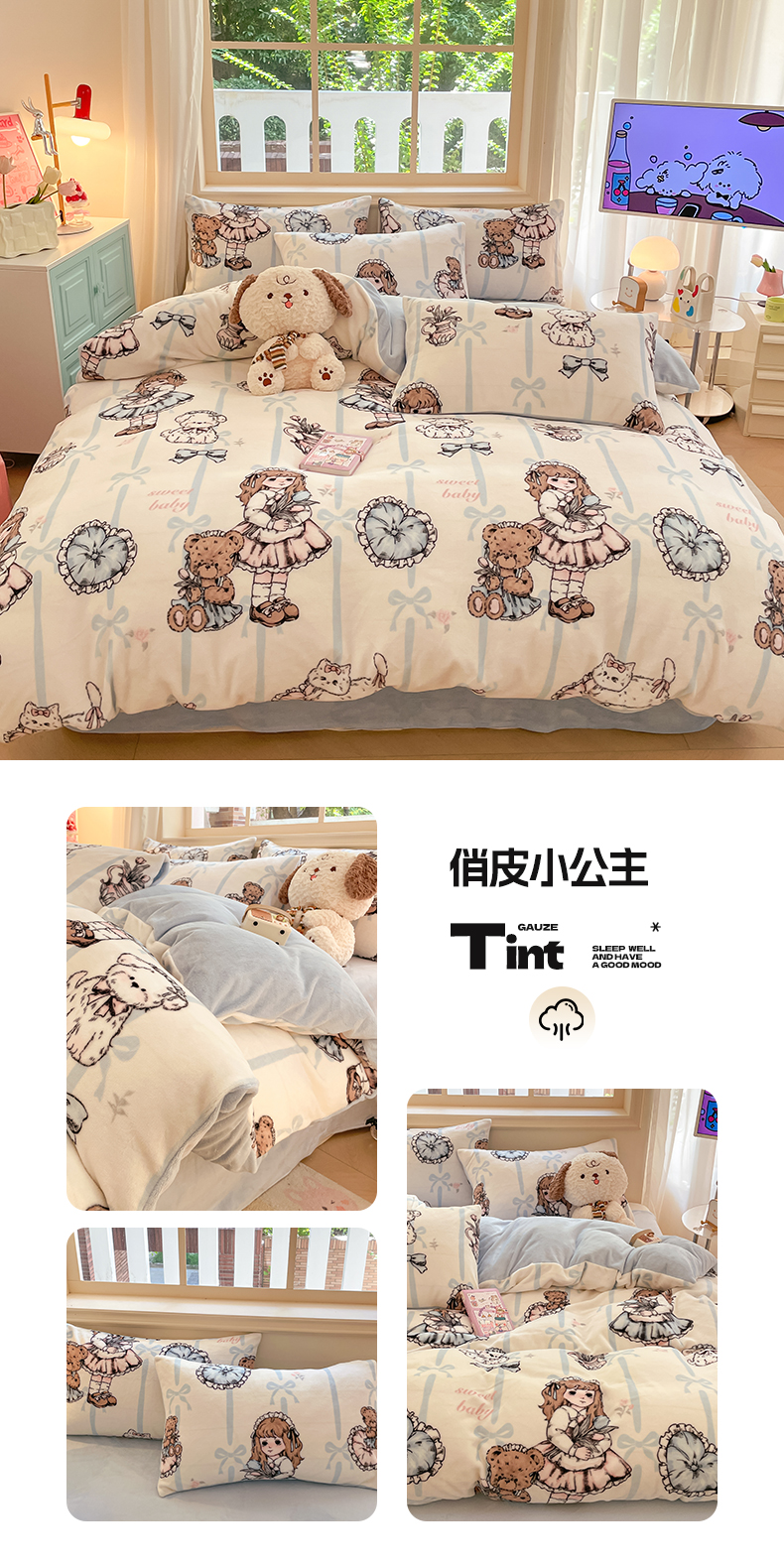 当前位置: 91家纺网 > 商品网购 > 床品套件 > 四件套 > 牛奶绒四件套 > 2024新款牛奶绒洛丽塔四件套-洛丽塔-场景一 俏皮小公主