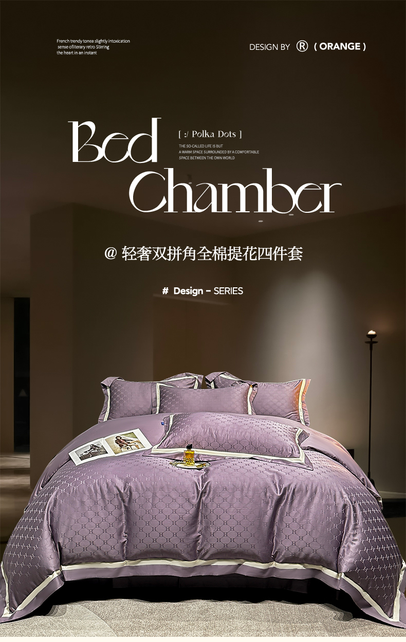 商品名称:2024新款轻奢双拼角全棉提花四件套 梵雅-葡萄紫