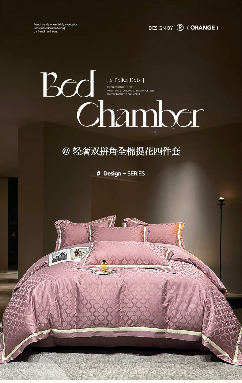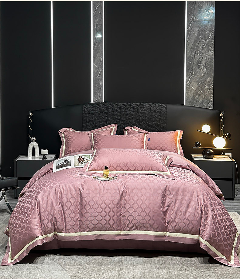商品名称:2024新款轻奢双拼角全棉提花四件套 淤不染-豆沙