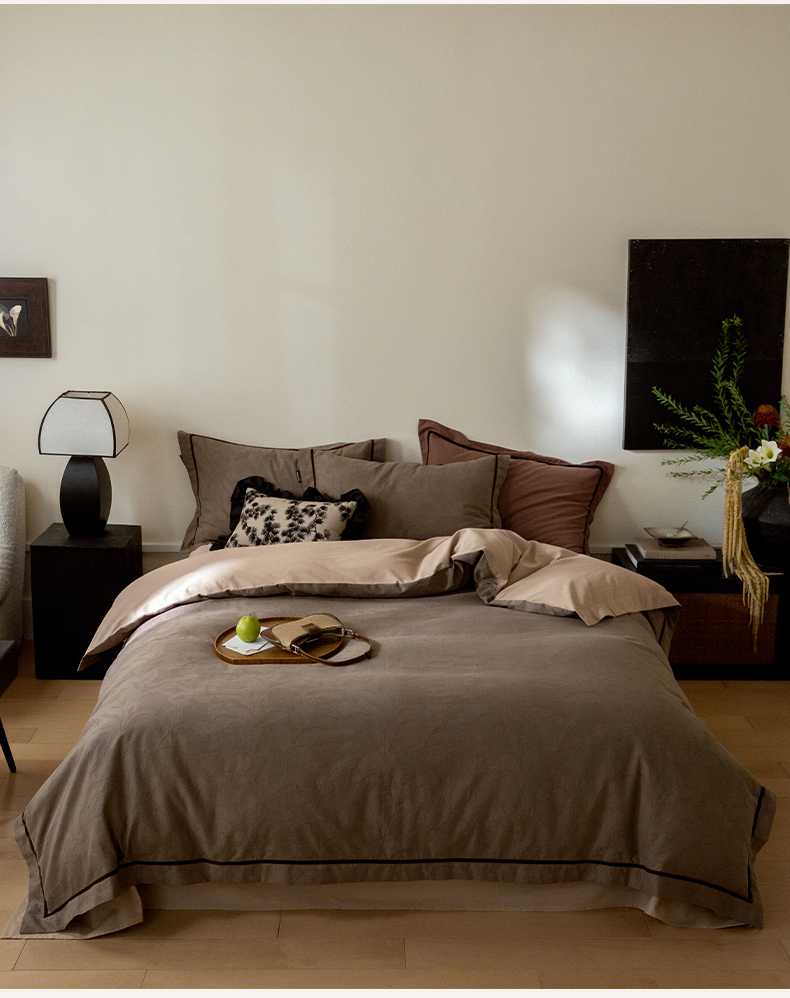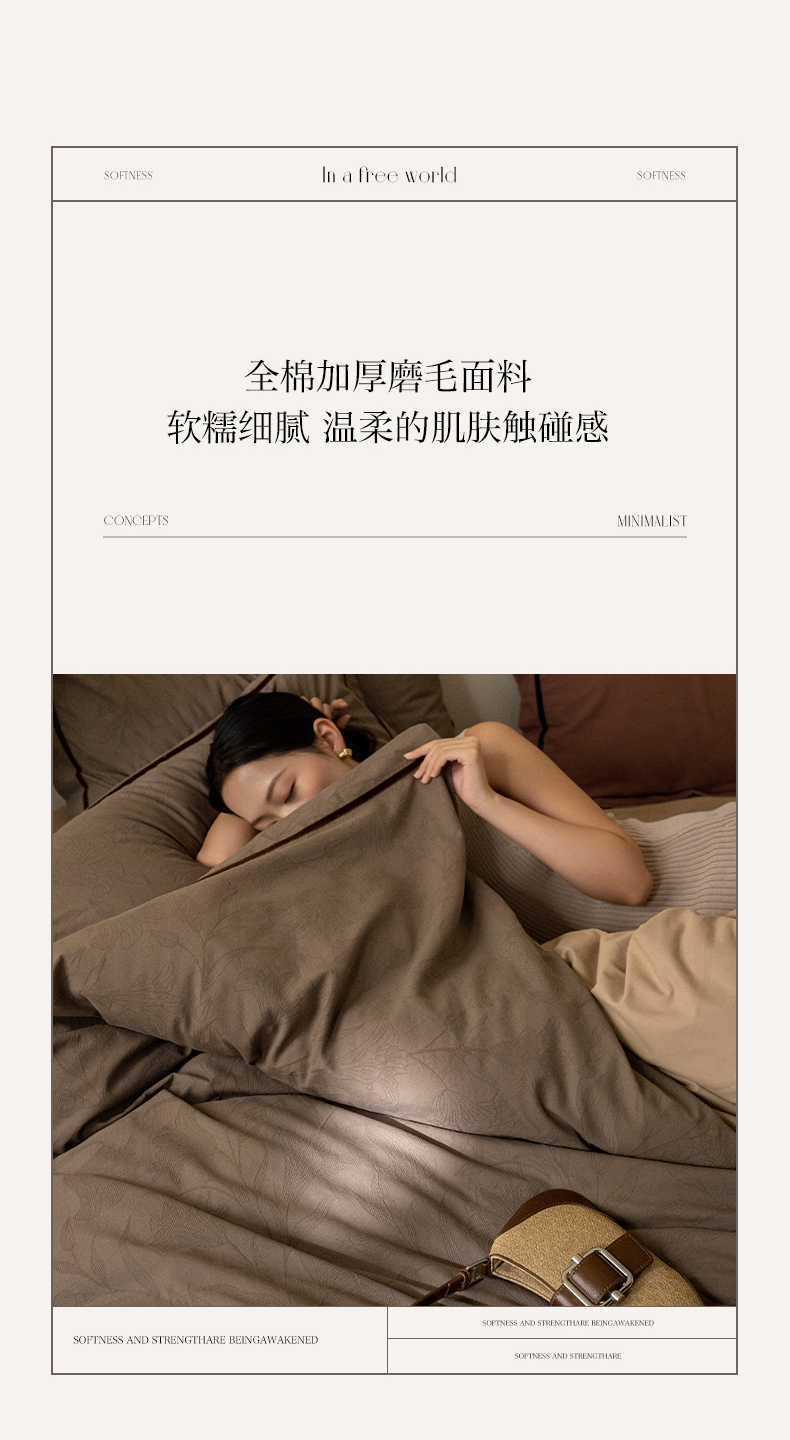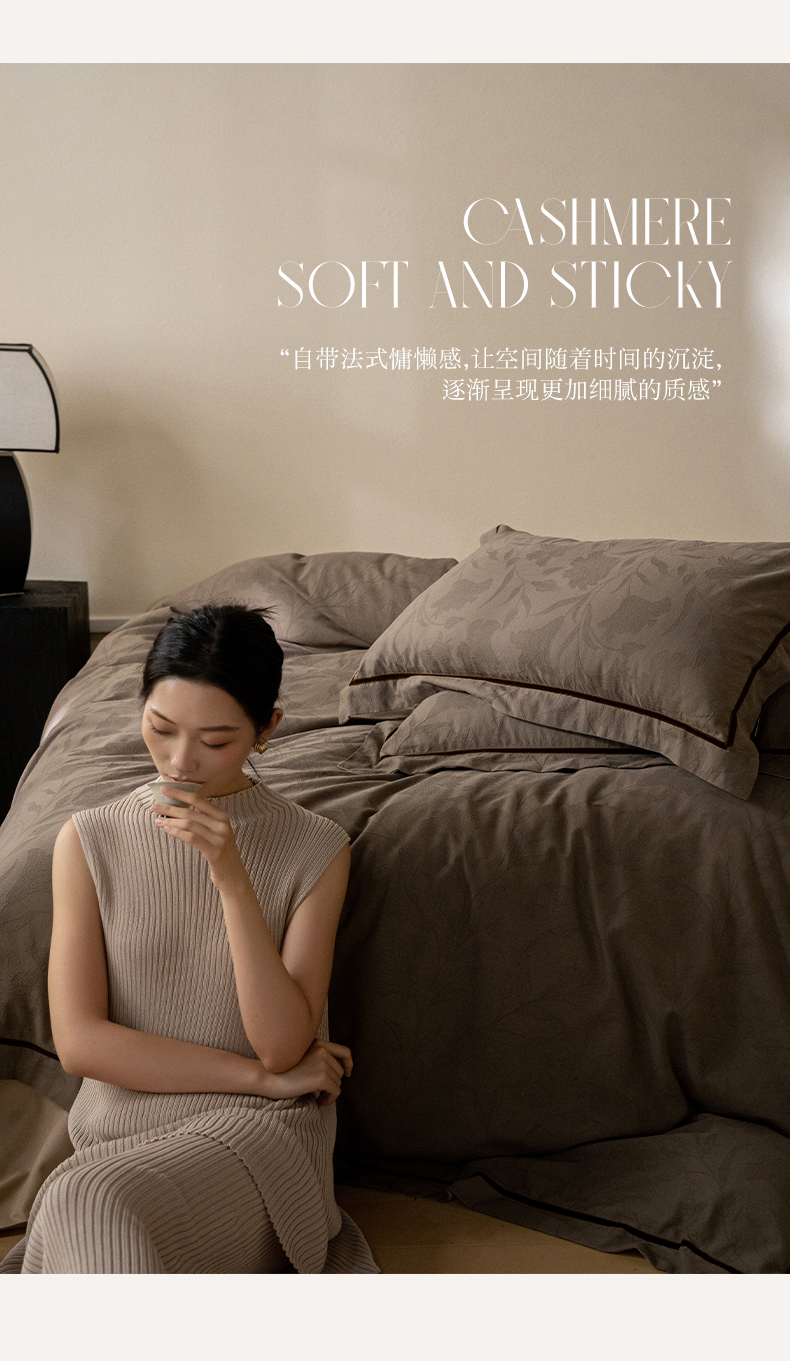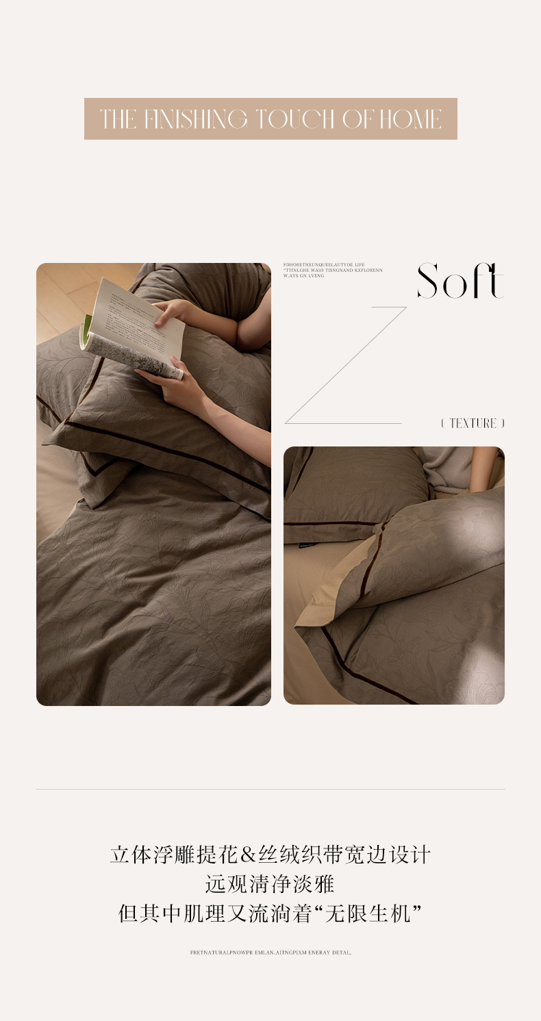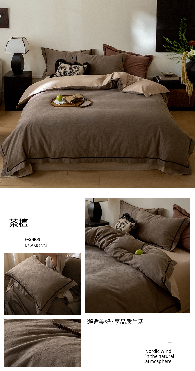 2024新款老钱风复古秋冬全棉加厚立体浮雕磨毛四件套 茶檀