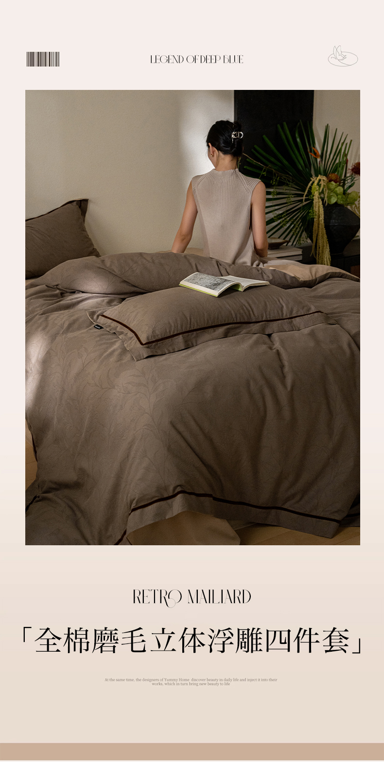 商品名称:2024新款老钱风复古秋冬全棉加厚立体浮雕磨毛四件套 茶檀