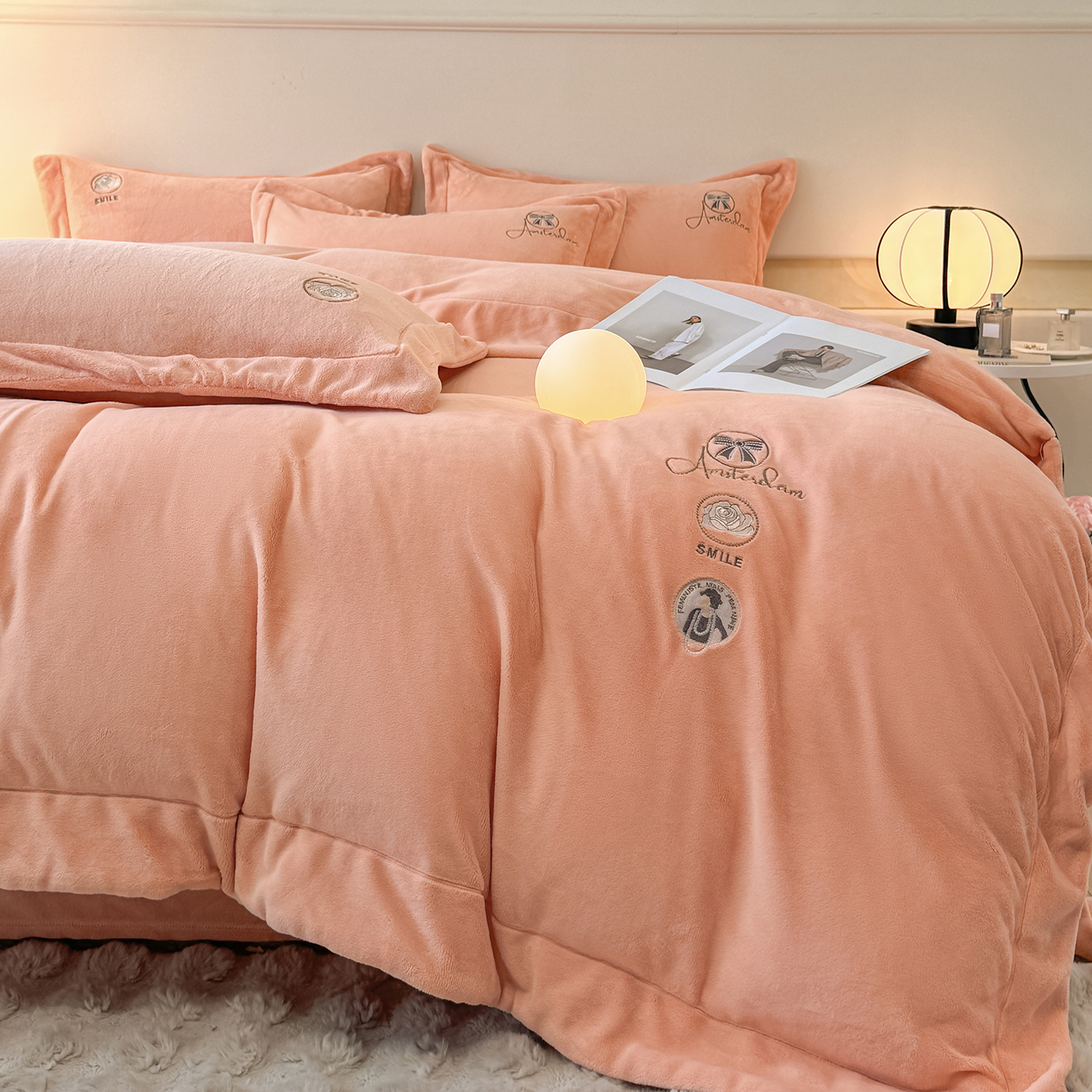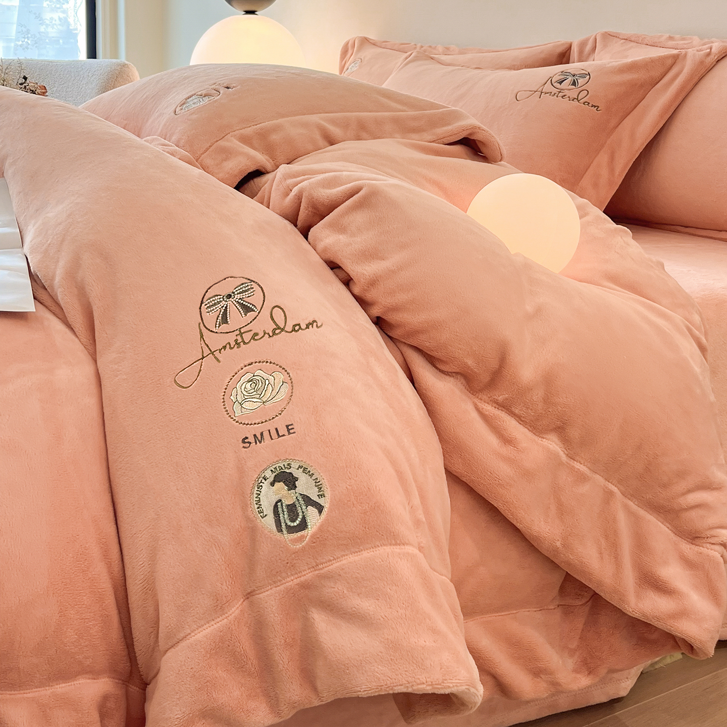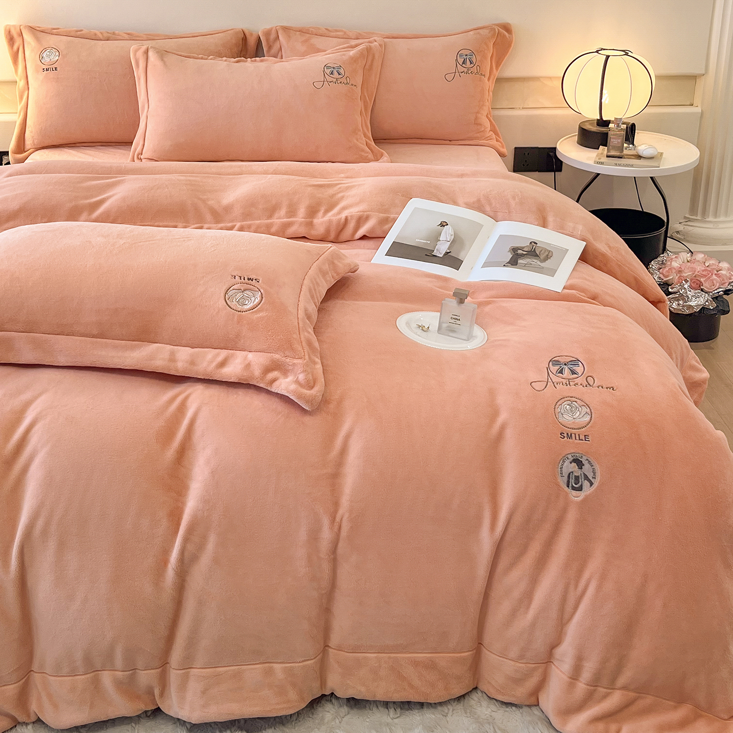 新方向 2025新款全消光A类刺绣牛奶绒四件套-伊菲 伊菲-桃玉