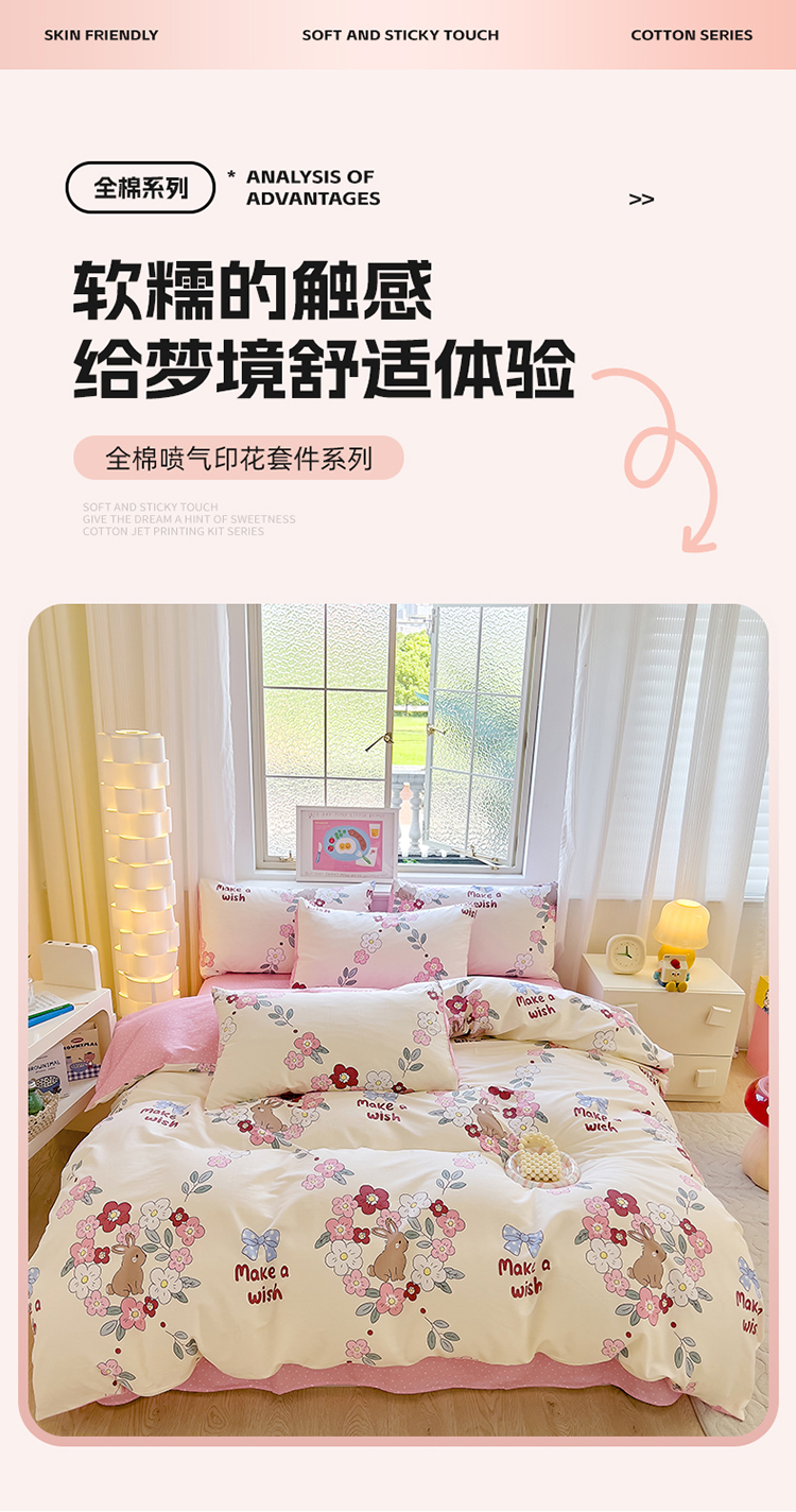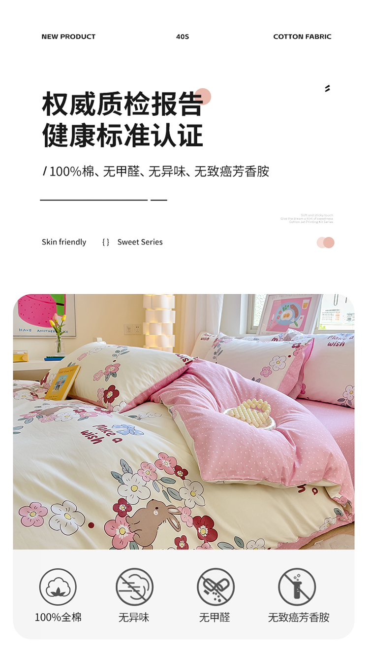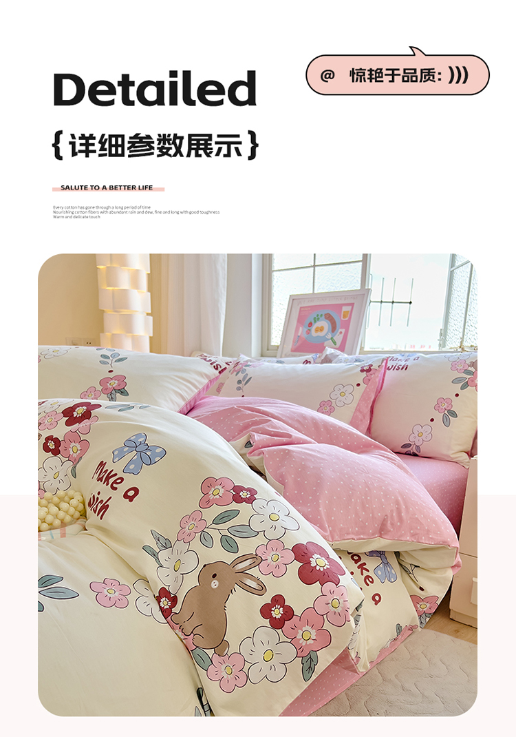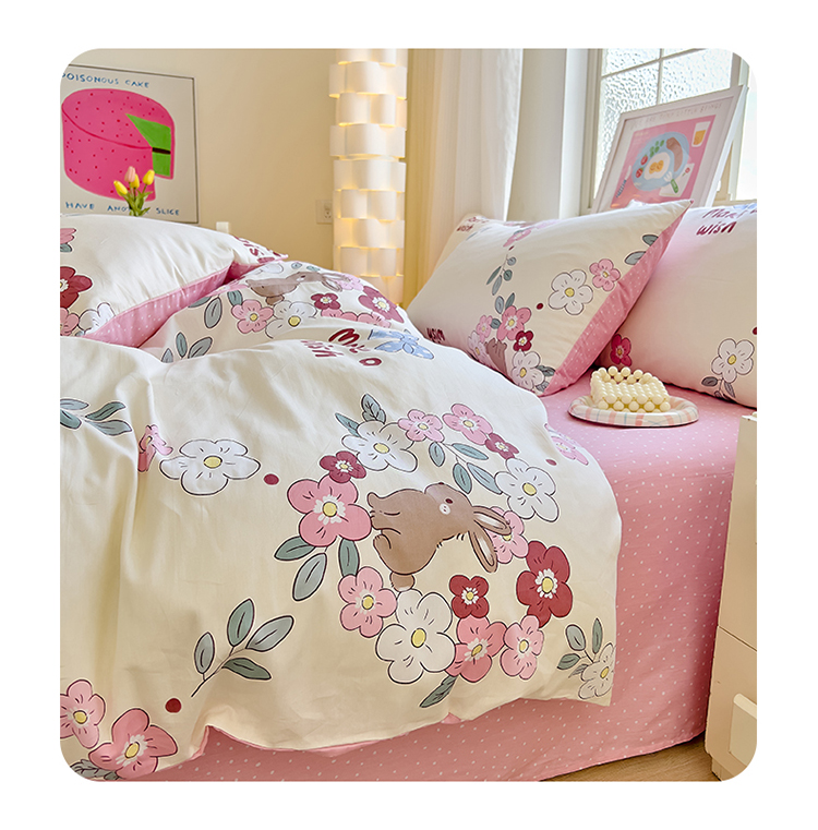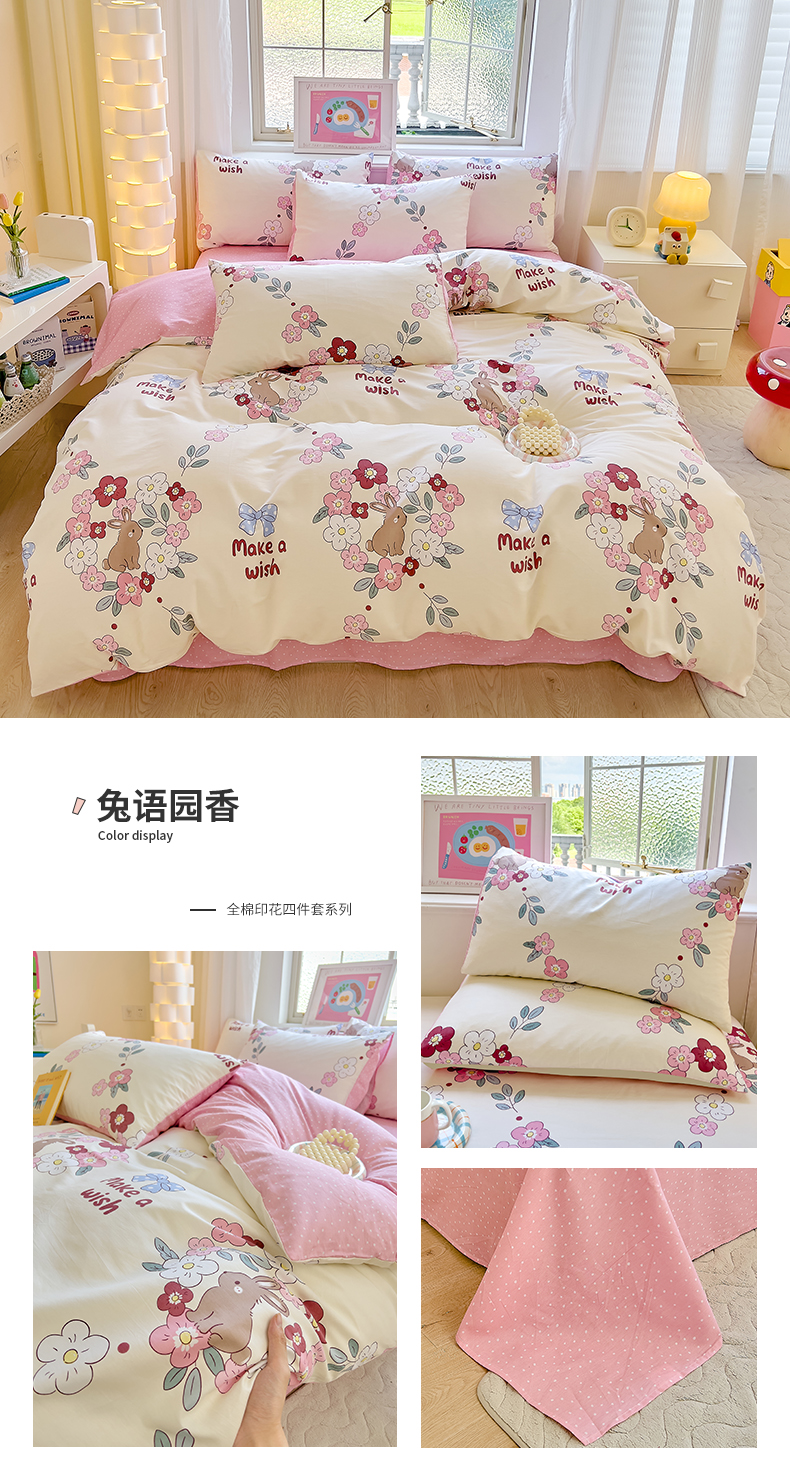 当前位置: 91家纺网 > 商品网购 > 床品套件 > 四件套 > 全棉普通四件套 > 拾物记 2024新款A类12868全棉喷气印花四件套 兔语园香