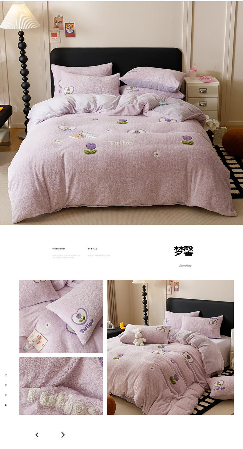 富瑞阁 2024新款秋冬加厚泰迪绒蚂蚁绒牛奶绒卡通毛巾绣花四件套三件套(预售7天) 梦馨