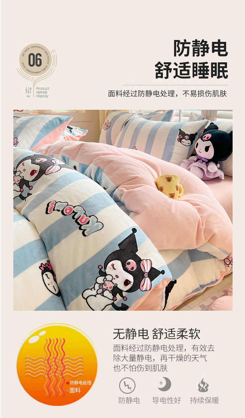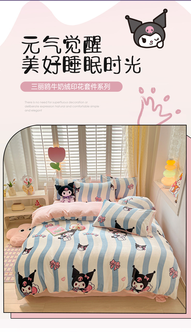 星座家纺 2025新款三丽鸥小版牛奶绒四件套 可爱库洛米