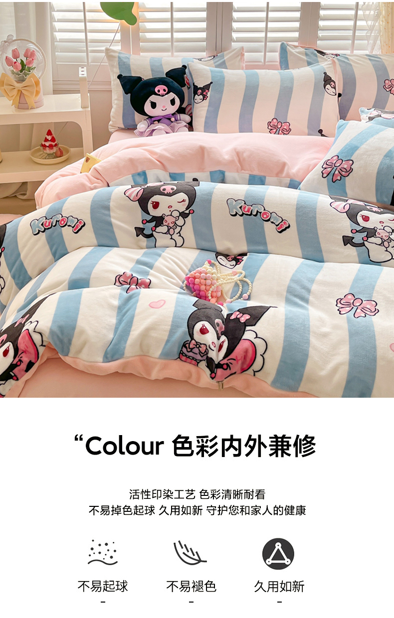 商品名称:星座家纺 2025新款三丽鸥小版牛奶绒四件套 可爱库洛米