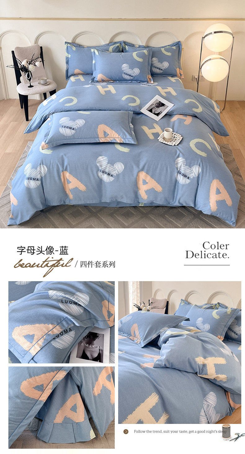 当前位置: 91家纺网 > 商品网购 > 床品套件 > 四件套 > 普通磨毛四件套 > 铭成 2024新款全棉生态喷气加厚磨毛四件套字母头像-蓝