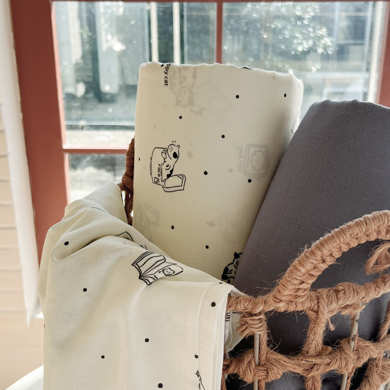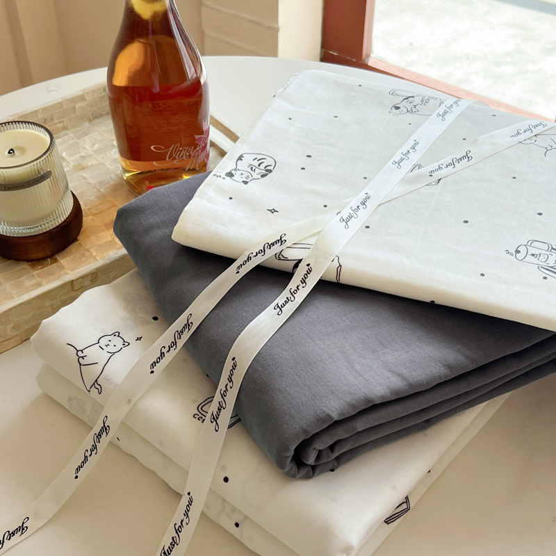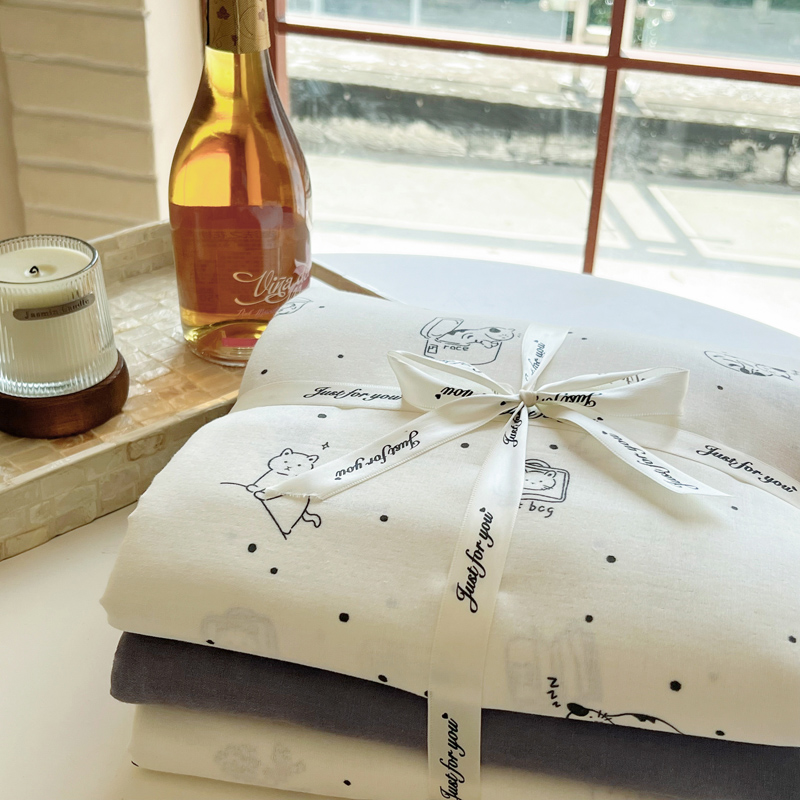 商品名称:一比一家纺 2025新款全棉母婴级抗菌有氧全棉双层纱亲肤全棉小清新印花三件套四件套 幻想猫