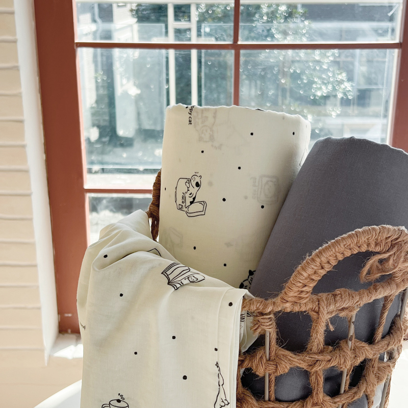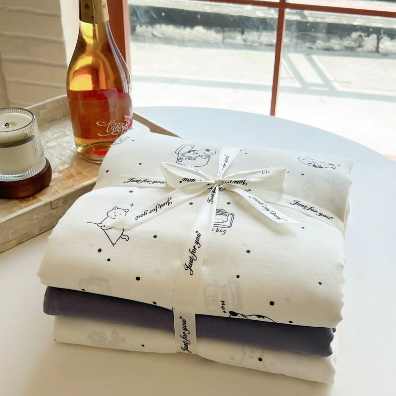 一比一家纺 2025新款全棉母婴级抗菌有氧全棉双层纱亲肤全棉小清新印花三件套四件套 幻想猫