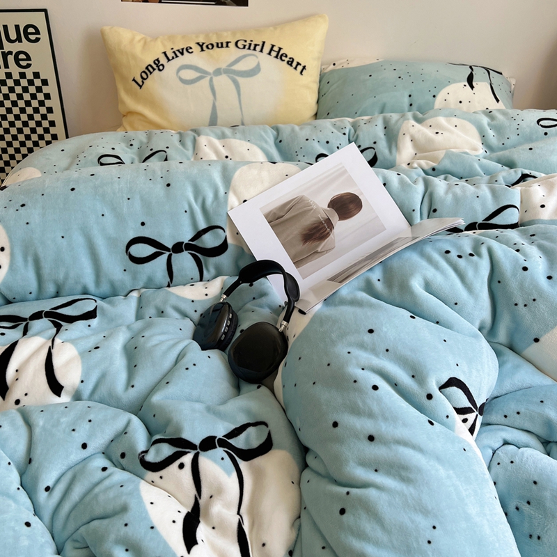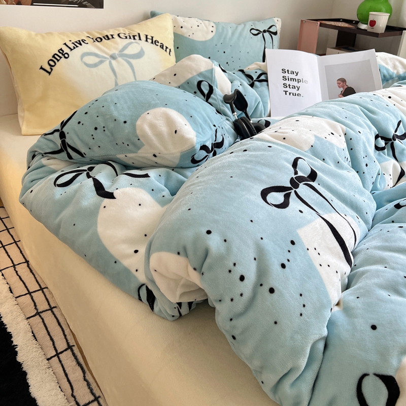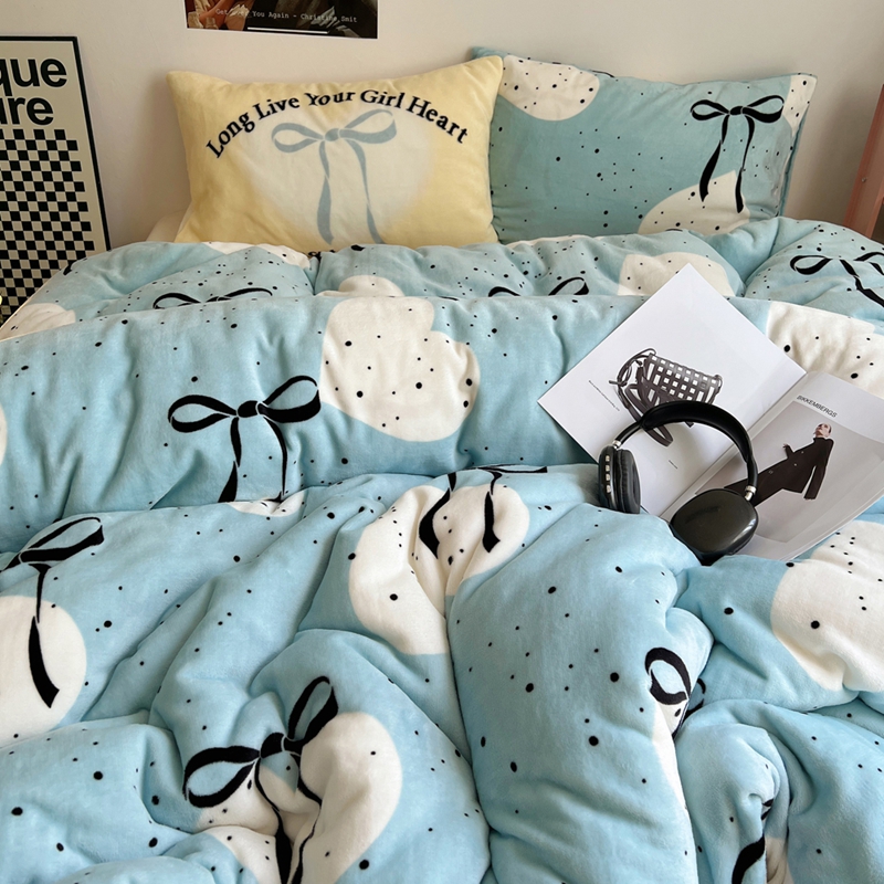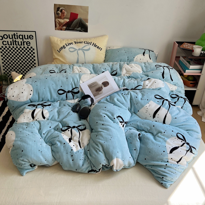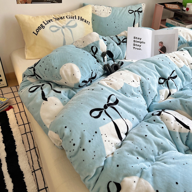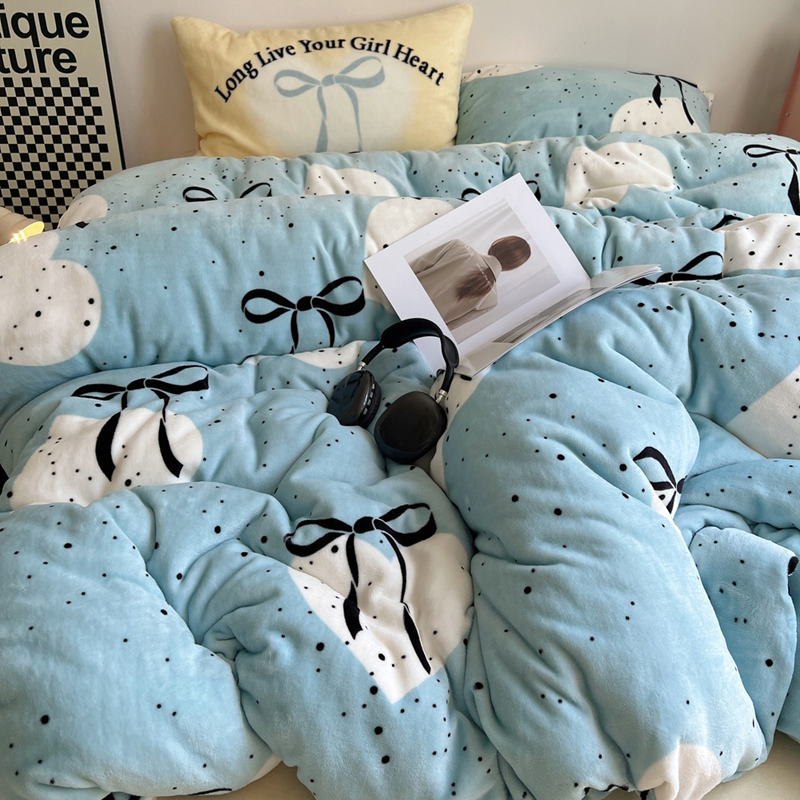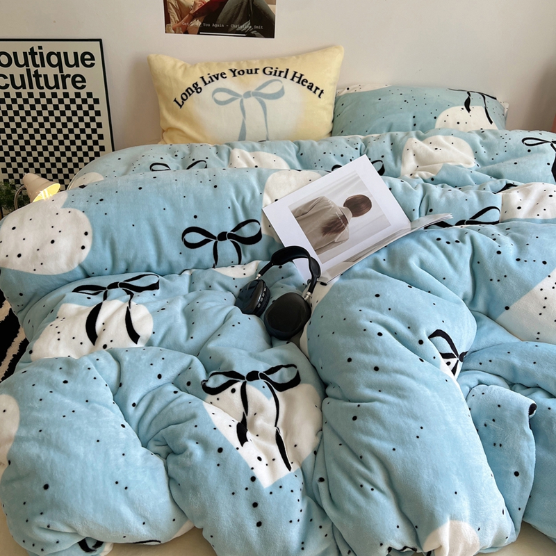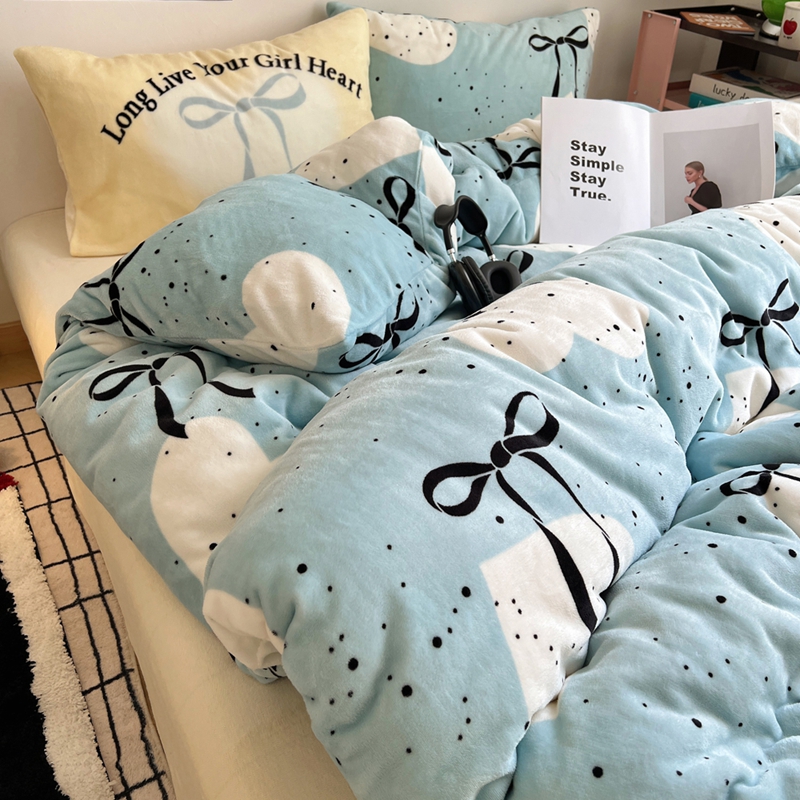 桃喜 2024新款多巴胺牛奶绒甜酷时尚混搭系列四件套 蓝色蝴蝶结