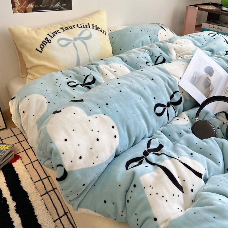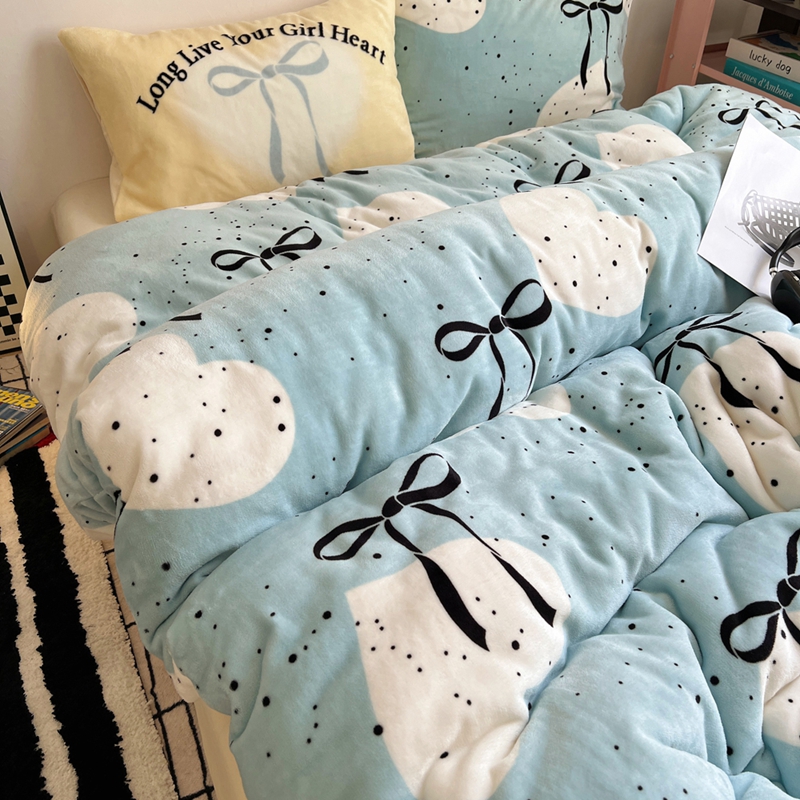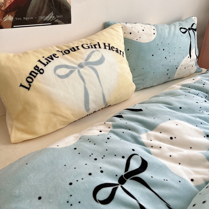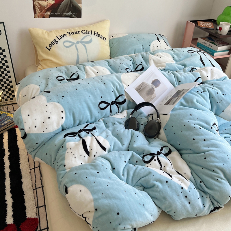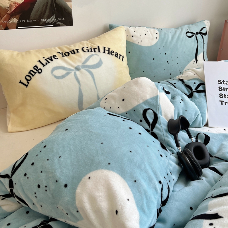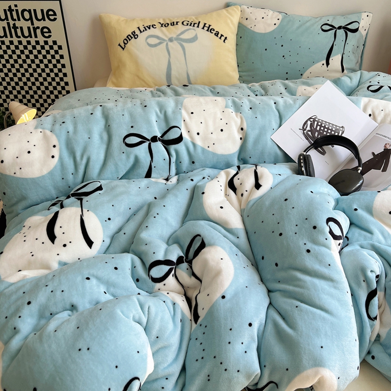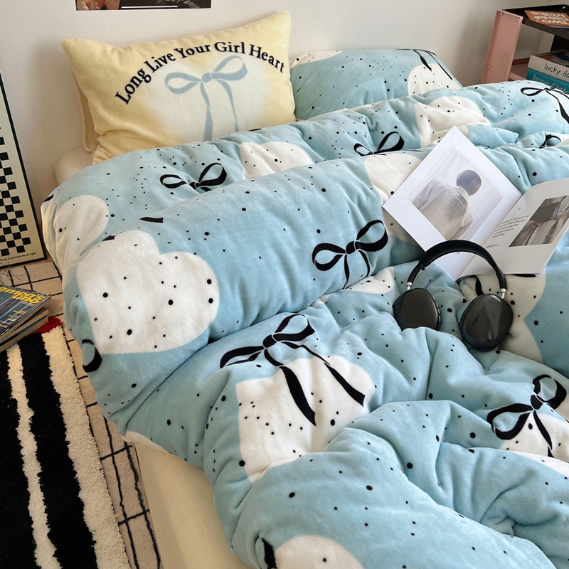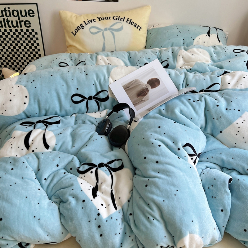 桃喜 2024新款多巴胺牛奶绒甜酷时尚混搭系列四件套 蓝色蝴蝶结