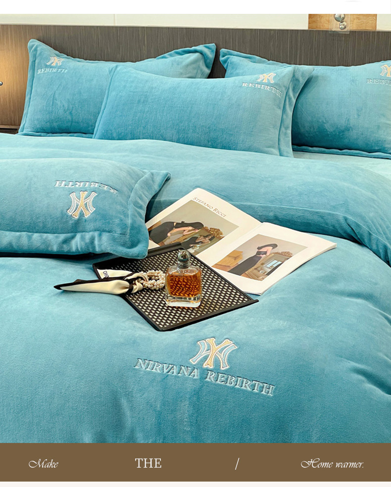 (总)星尚家纺 2024新款全消光A类230g牛奶绒韩版绣花绒四件套-绚丽花语,豆沙粉,浪漫紫,雾霾蓝,樱花粉,晨雾绿