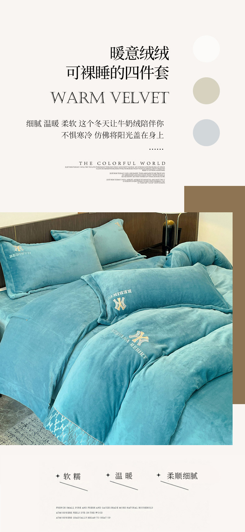 (总)星尚家纺 2025新款全消光A类母婴级加厚保暖牛奶绒绣花刺绣四件套,豆沙粉,卡其棕,梵星绿,孔雀蓝,高级灰,香芋紫,樱花粉