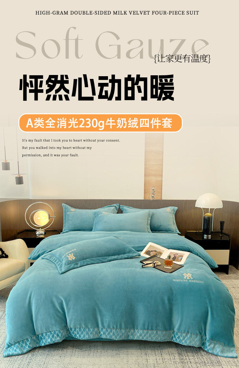 (总)星尚家纺 2024新款保暖全消光A类230g牛奶绒绣花绒四件套-曼妙花园,豆沙粉,孔雀蓝,清新绿,绅士灰,香芋紫,樱花粉