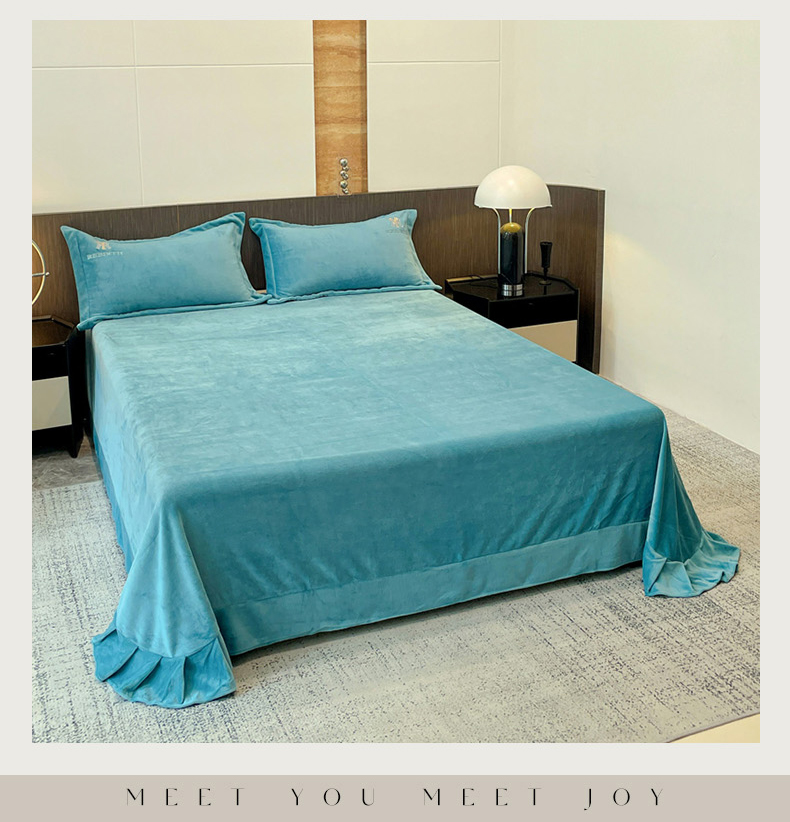(总)星尚家纺 2024新款加厚保暖全消光牛奶绒夹棉床裙四件套-玫瑰之恋,粉玉,寐紫,浅蓝,水绿