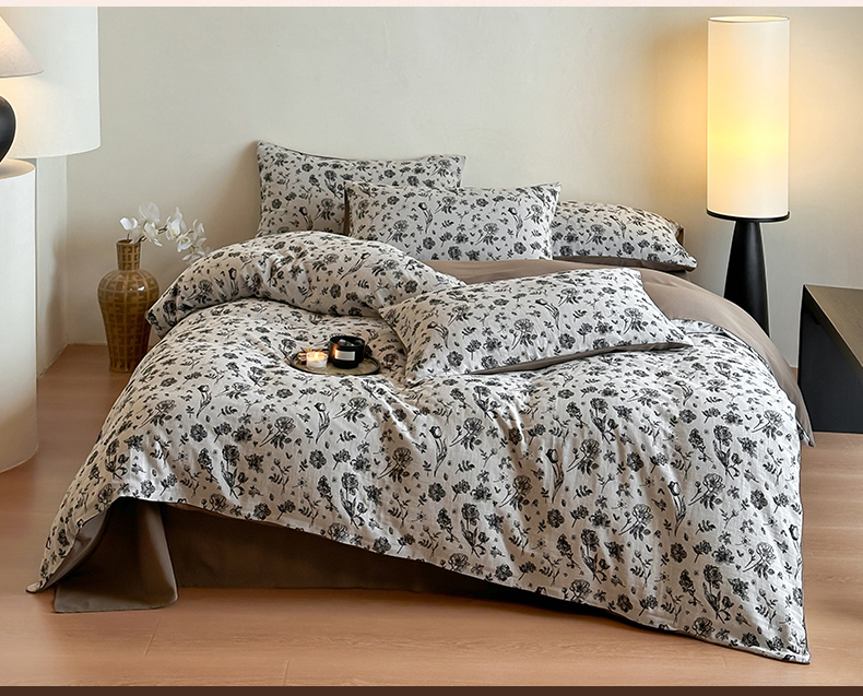 (总)梦享生活家居 2024新款双层纱黑灰提花系列四件套