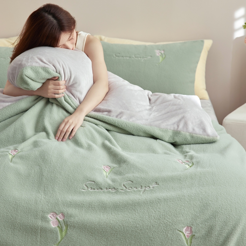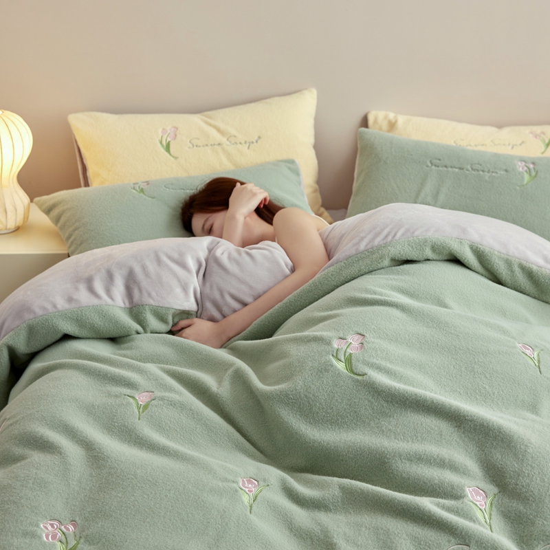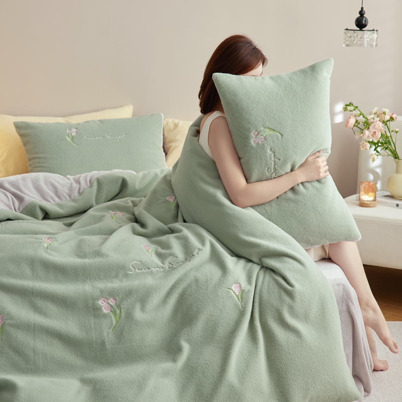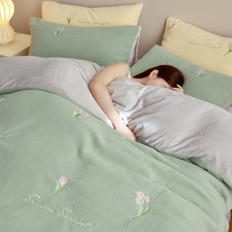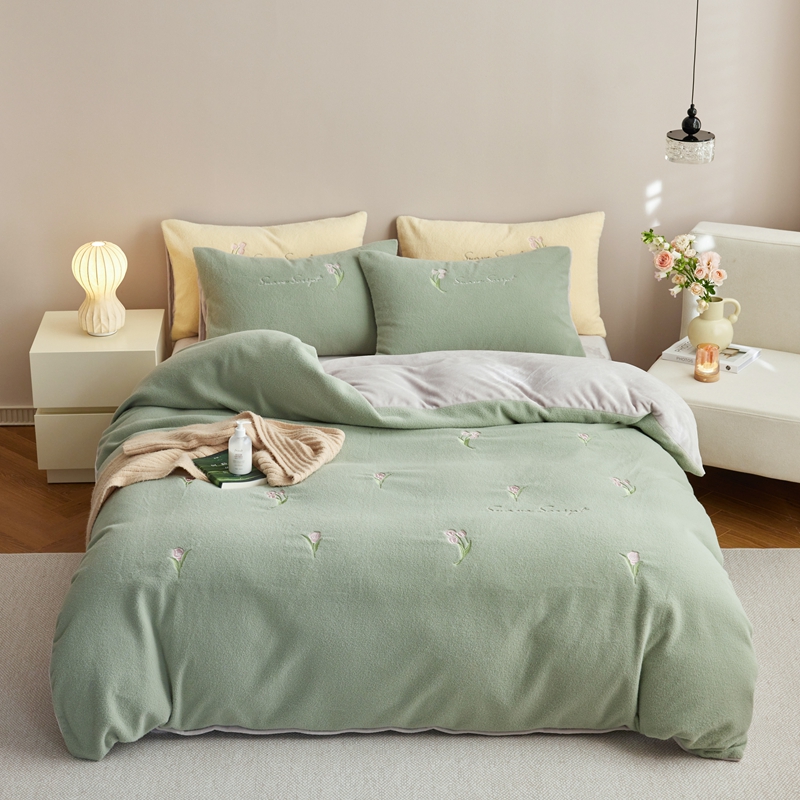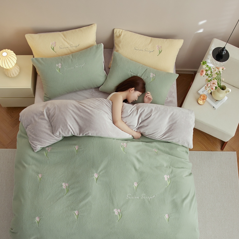 当前位置: 91家纺网 > 商品网购 > 床品套件 > 四件套 > 牛奶绒四件套 > 初拾 2024新款300g暖羊绒绣花牛奶绒四件套-绒郁金香 绒郁金香-秋绿